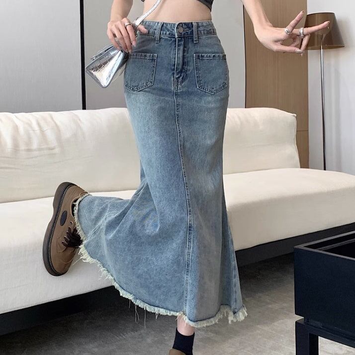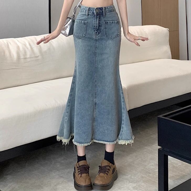 デニム マーメイドスカート 韓国 レディース ファッション Aラインフレア ロング デニムスカート