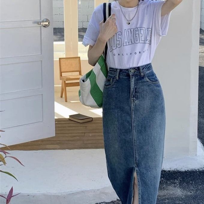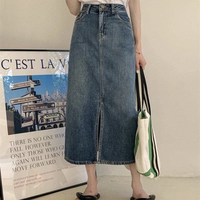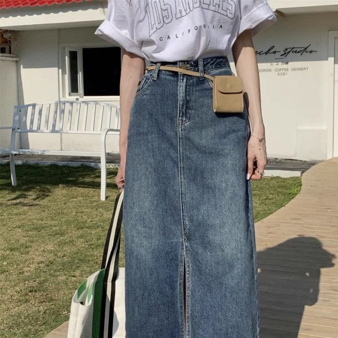 デニム ロングタイト スカート レディース 韓国 ファッション ブルーデニム 夏 スカート フロントスリット デニムスカート