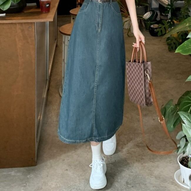 デニムワンピース 半袖 レディース 韓国 ファッション お呼ばれ ロング Aライン フレアロング ハーフボタン かわいい
