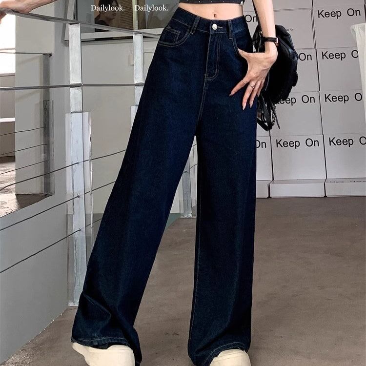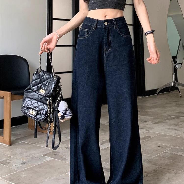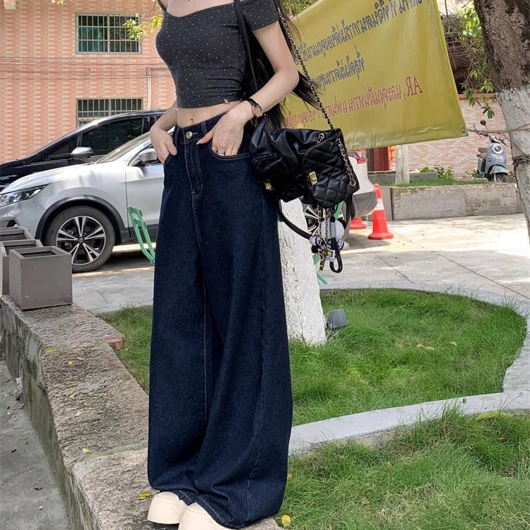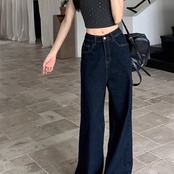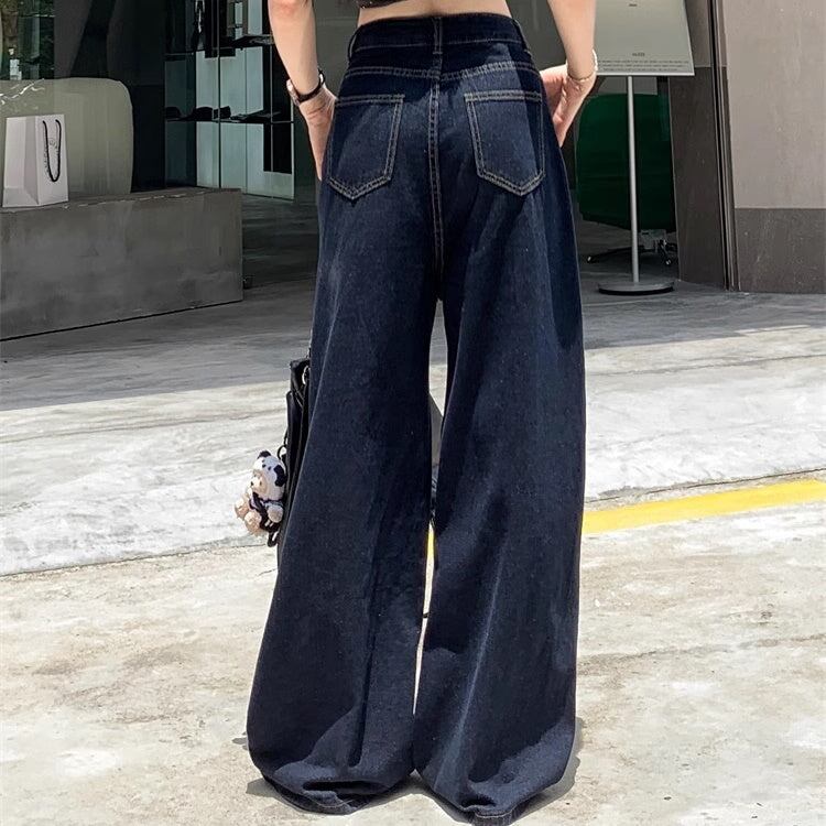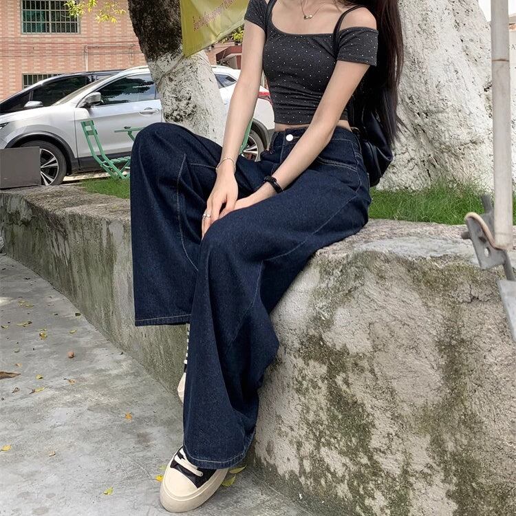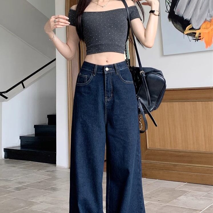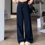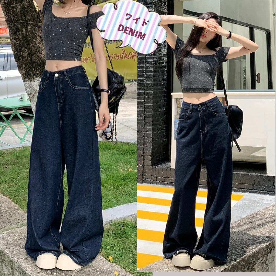 デニムパンツ ワイドパンツ レディース 韓国 ファッション デニム インディゴカラー きれいめジーンズ 大人カジュアル ノーダメージ ストレ—ト 深ばき レギュラーウエスト