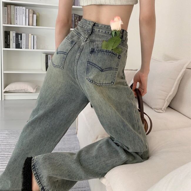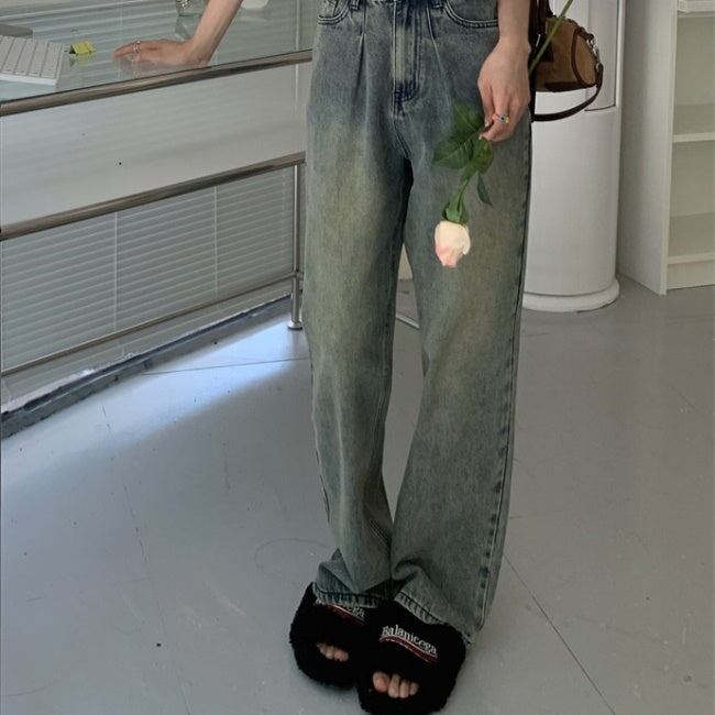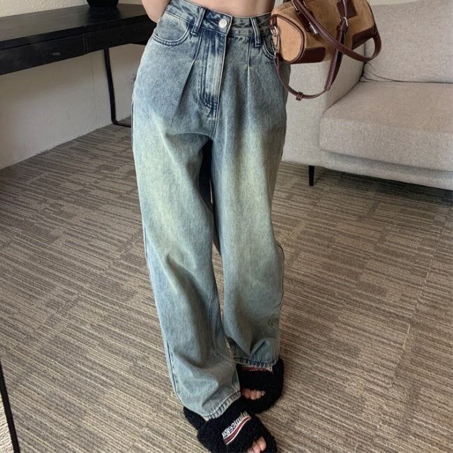 モップパンツ ワイドパンツ レディース 韓国 ファッション デニムパンツ 太めのパンツ ジーンズ
