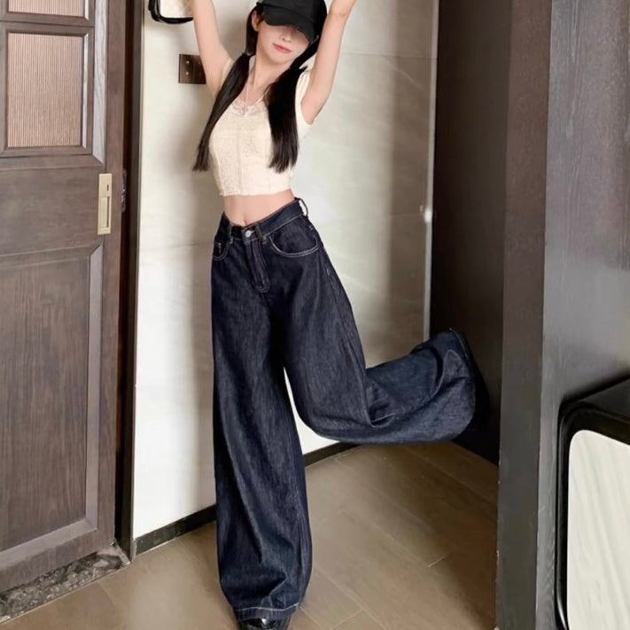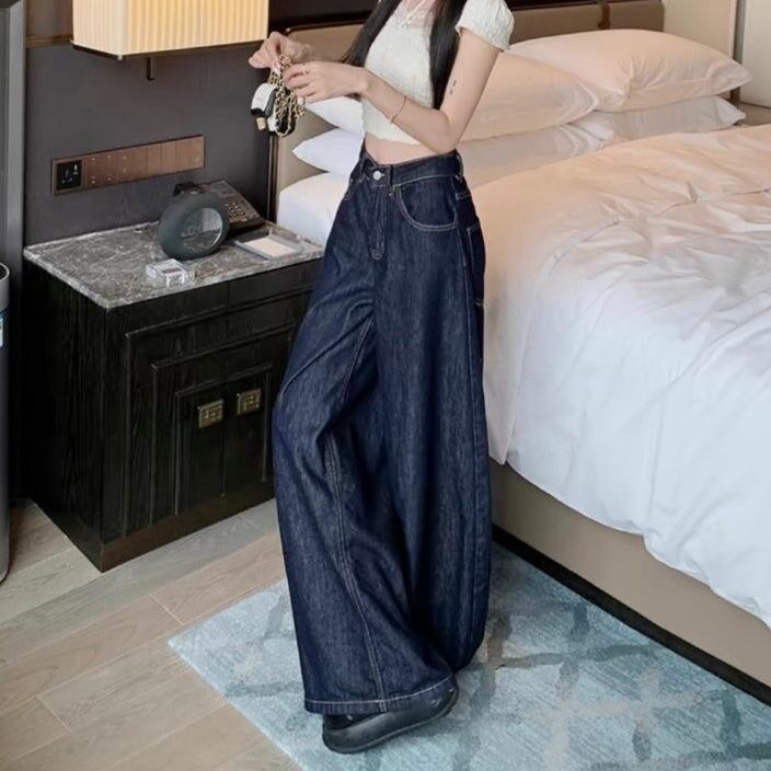 デニム ワイドパンツ レディース 韓国 ファッション ワイド バギーパンツ インディゴブルー デニムパンツ