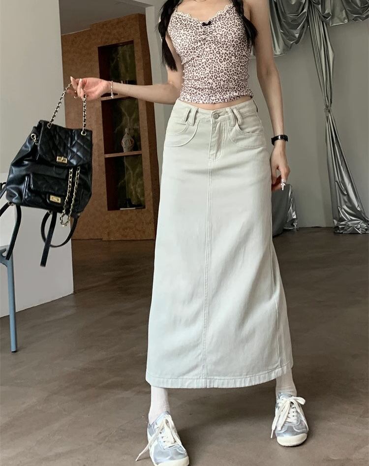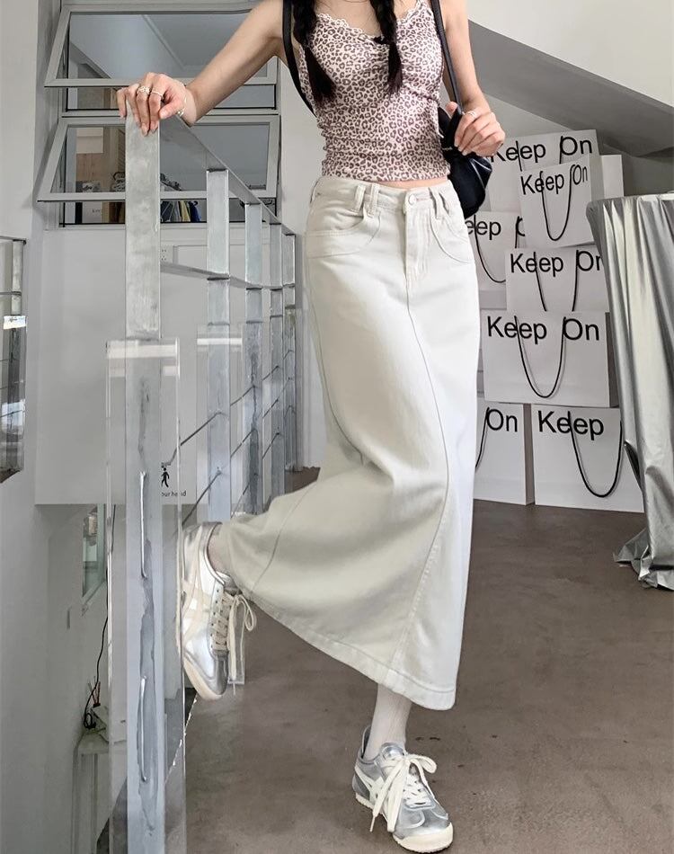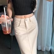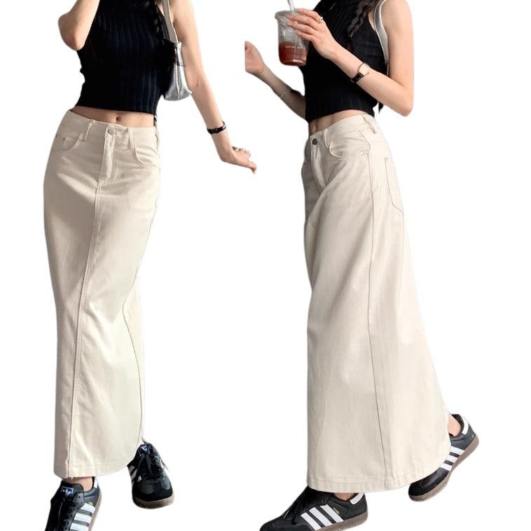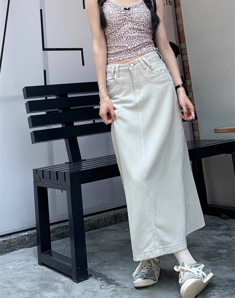 デニムスカート レディース 韓国 ファッション レトロ ホワイトデニム ナロー ロング スカート