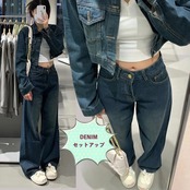 デニムジャケットとレギュラーパンツのセットアップ