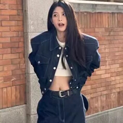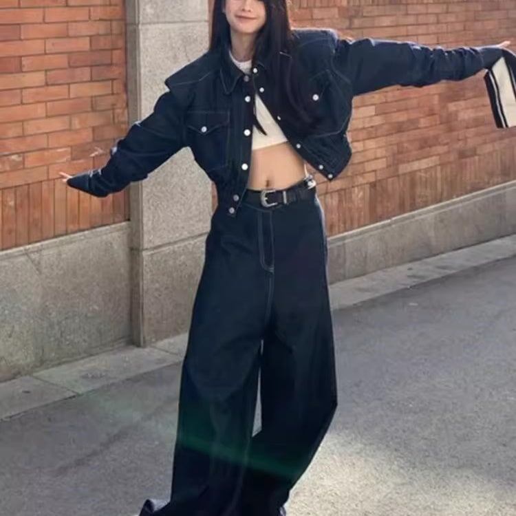 デニムセットアップ レディース 韓国 ファッション 上下セット ワイドパンツ クロップドデニムジャケット