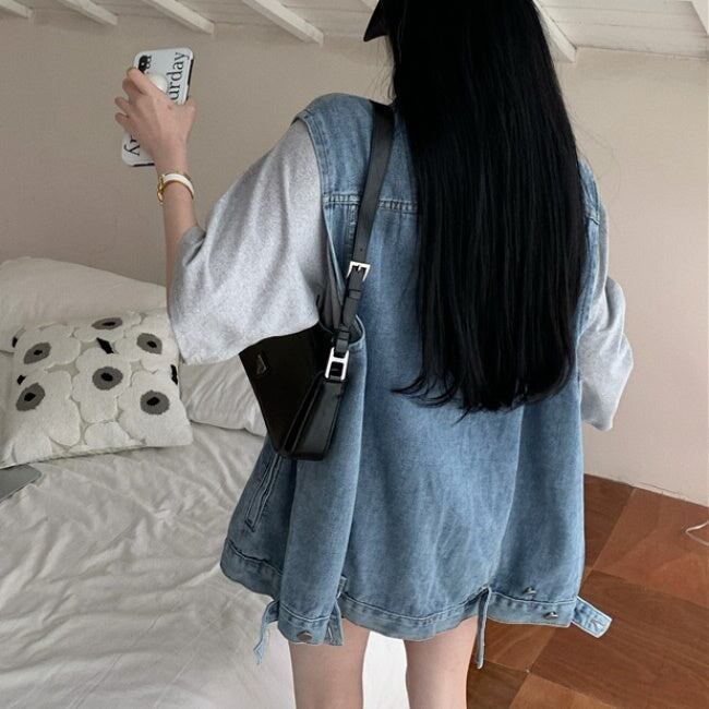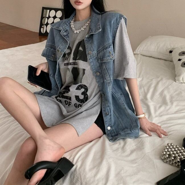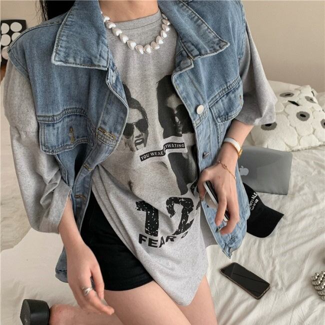 ビッグTシャツとデニムベストのアンサンブル♪