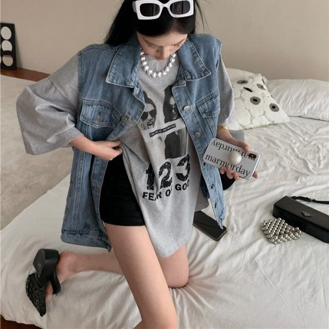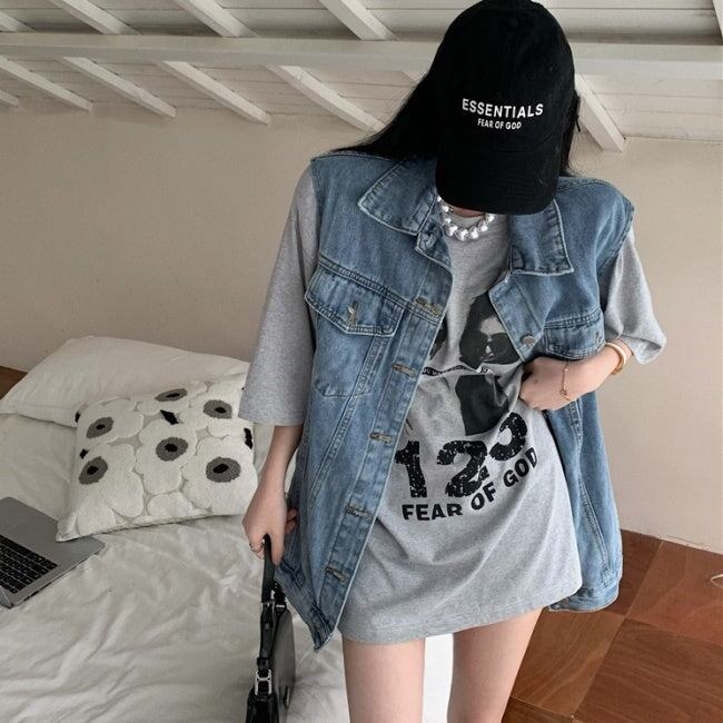 デニムベスト Tシャツ 半袖 アンサンブル レディース 韓国 ファッション 2ピースセット デニム