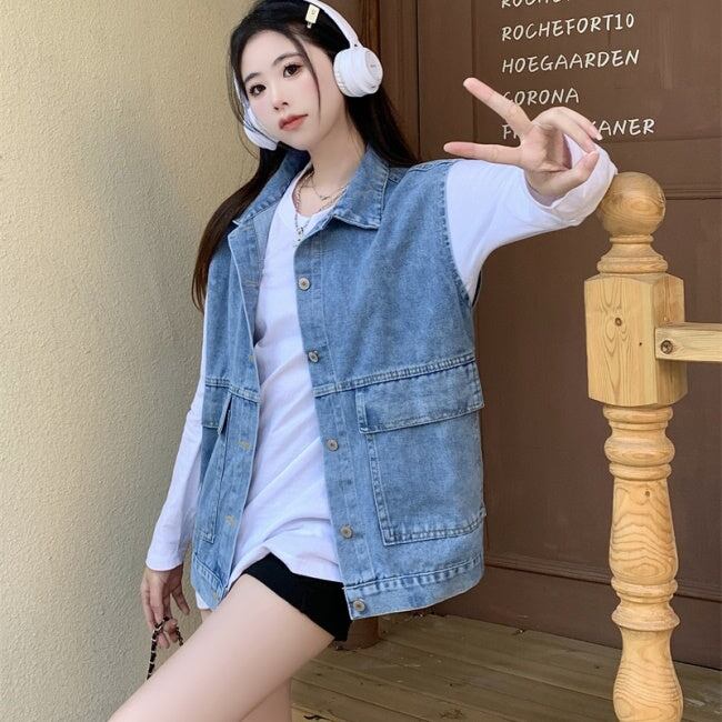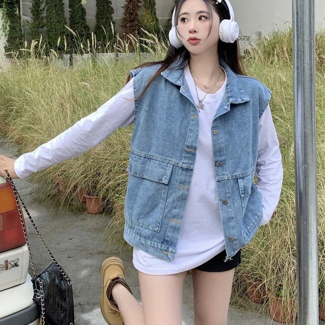 デニムベスト レディース オーバーサイズ ジレ 韓国 ファッション レイヤードコーデ 春夏