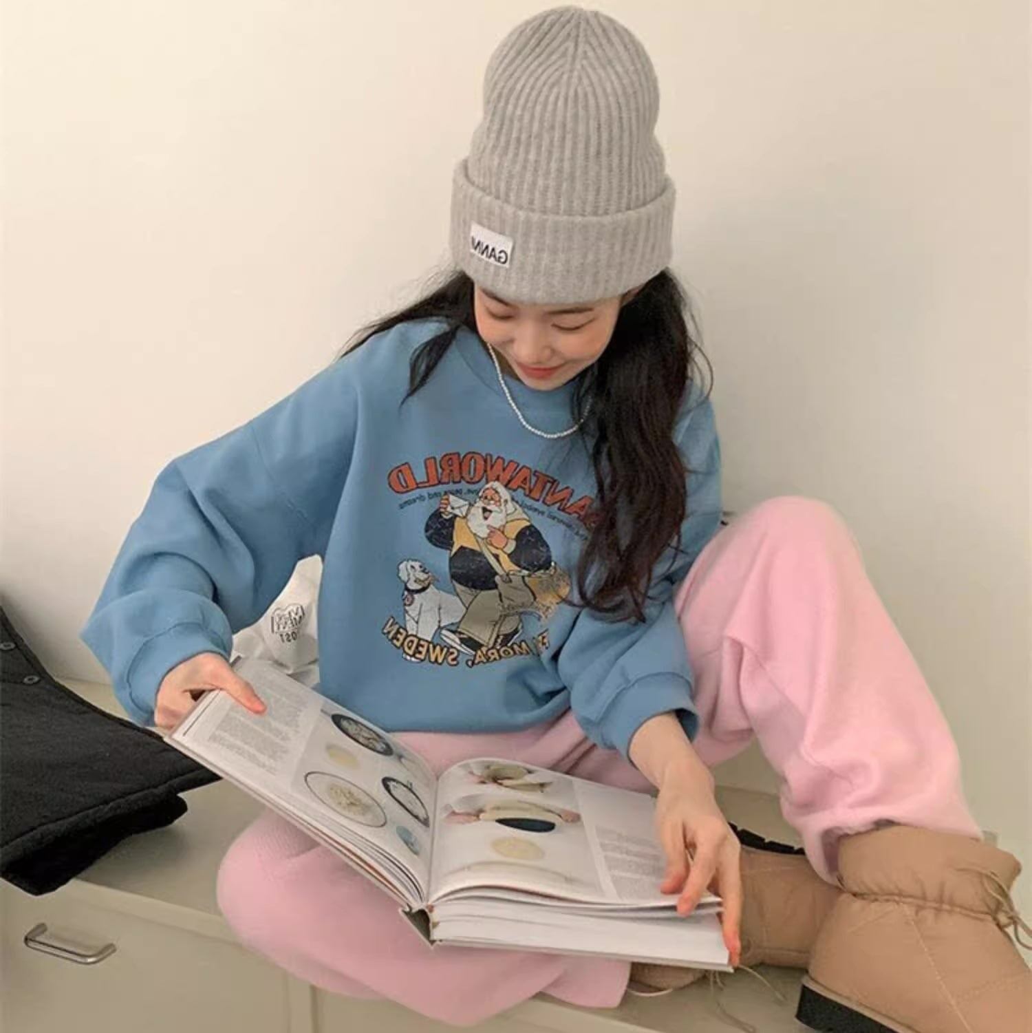 トレーナー レディース キャラクター プリント 韓国 ファッション アメリカン レトロ かわいい オーバーサイズ スウェット