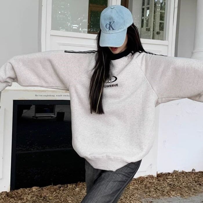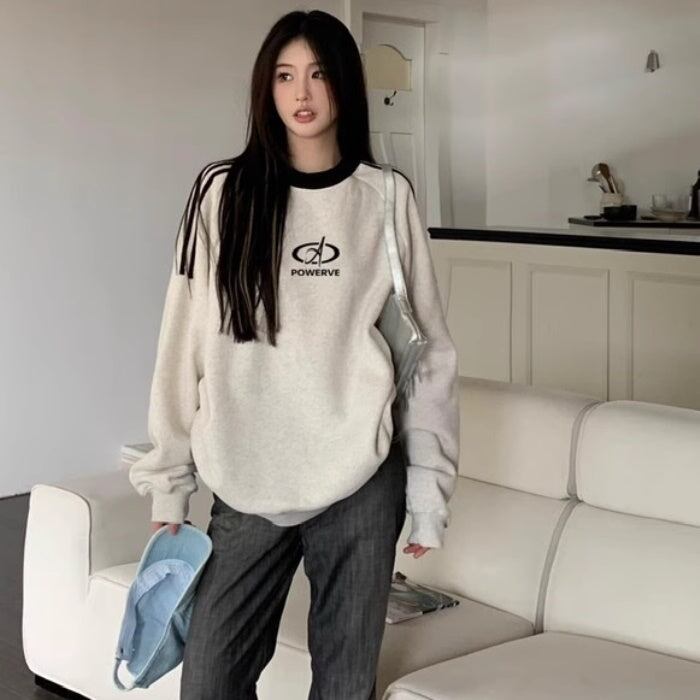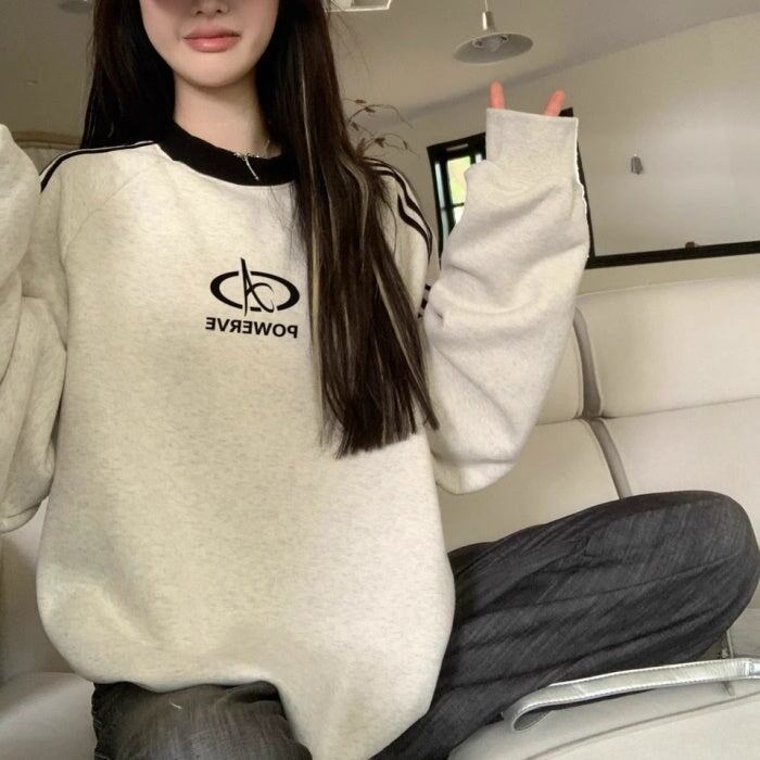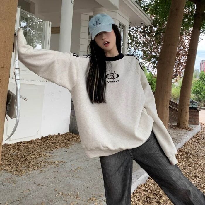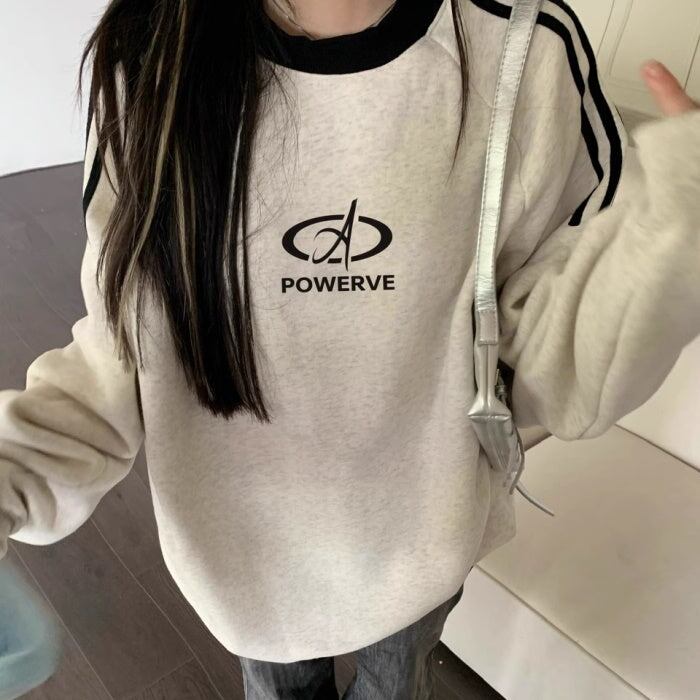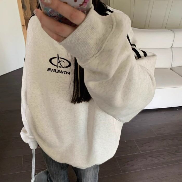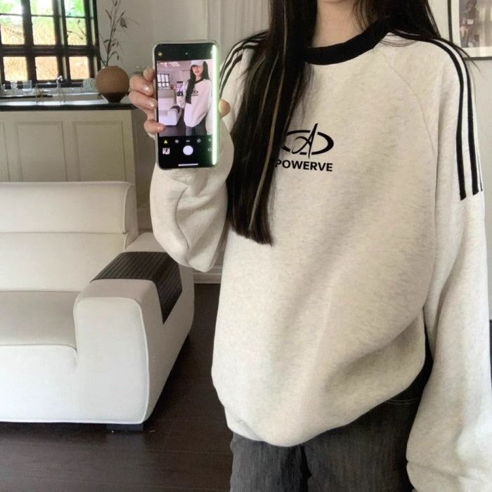スウェットトレーナー レディース 韓国 ファッション ロゴマーク ライン トレーナー スウェットトップ オーバーサイズ おしゃれ 秋冬トップ メンズライク