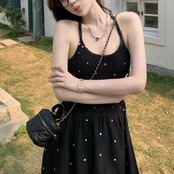 ドット柄♪キャミワンピースバックシャンな背中見せワンピース
