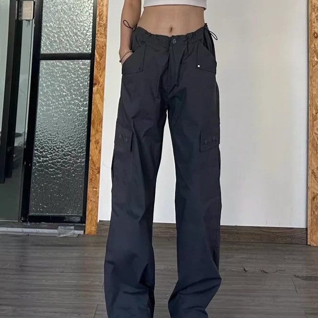 カーゴパンツ ストレートパンツ レディース 韓国 ファッション 裾コード ゴムウエスト カジュアルパンツ ワークパンツ 薄手 夏パンツ