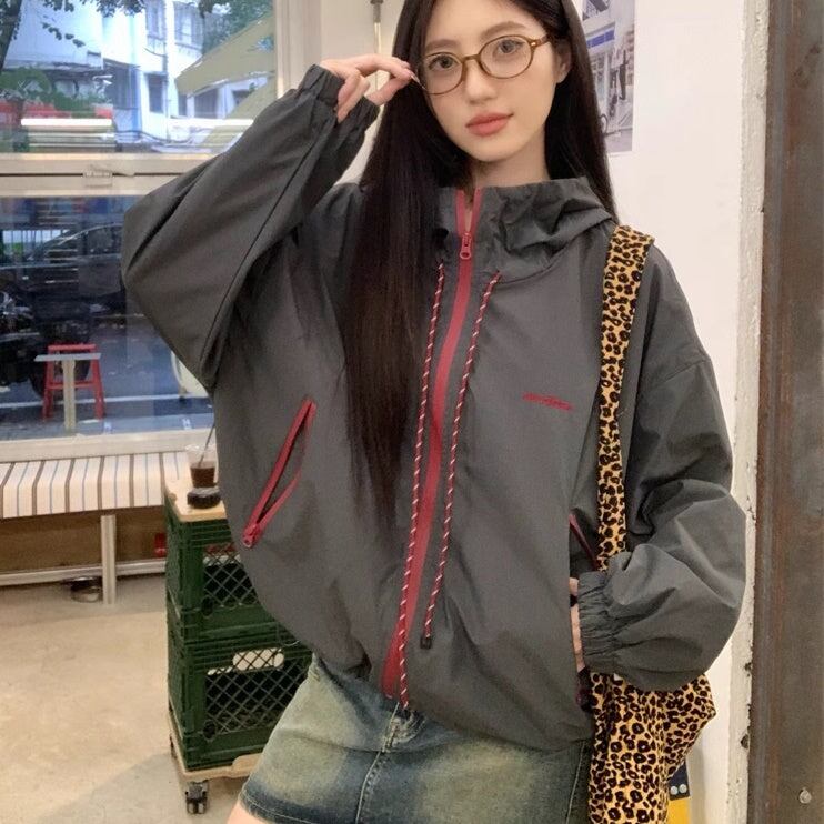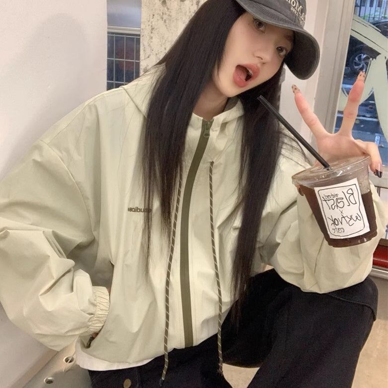 ナイロン ジャケット レディース ジップパーカー 韓国 ファッション ウィンドブレーカー 秋 スポーツ アウター ワンポイント ロゴ
