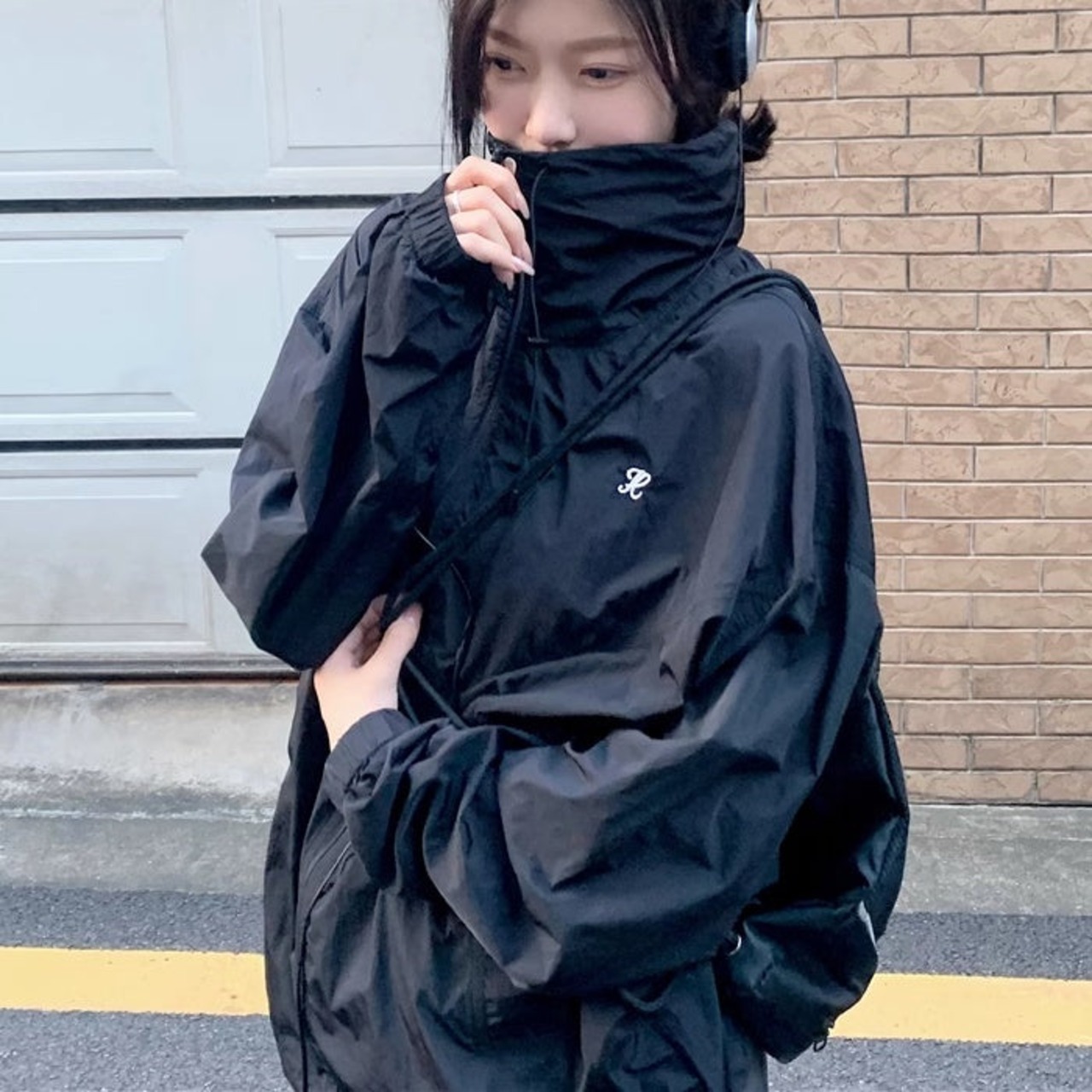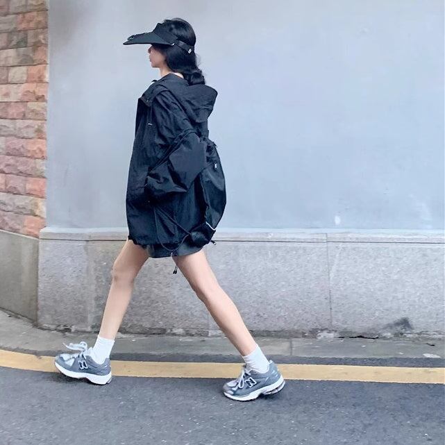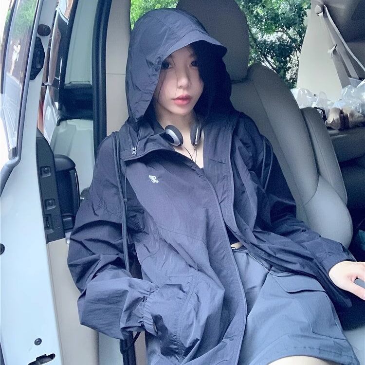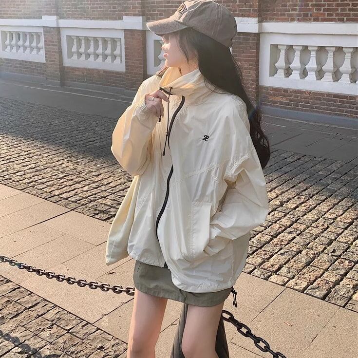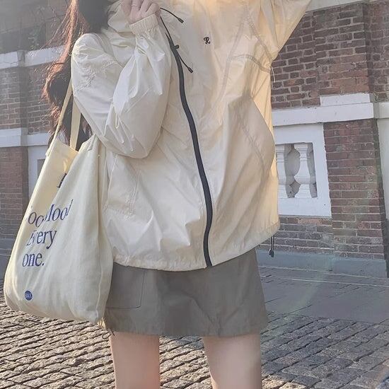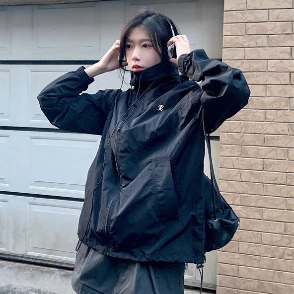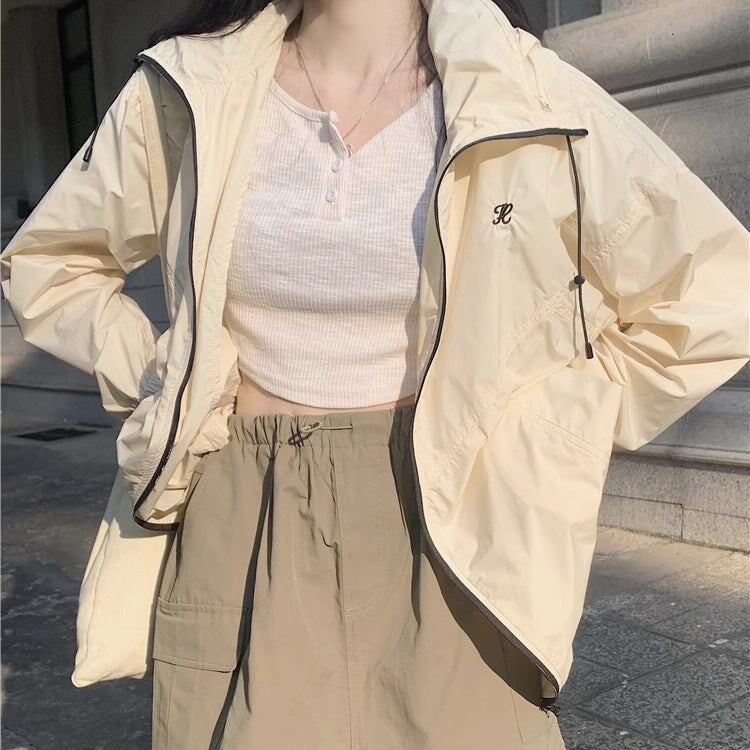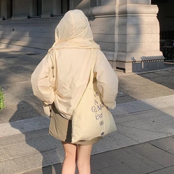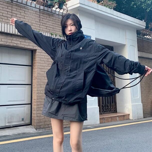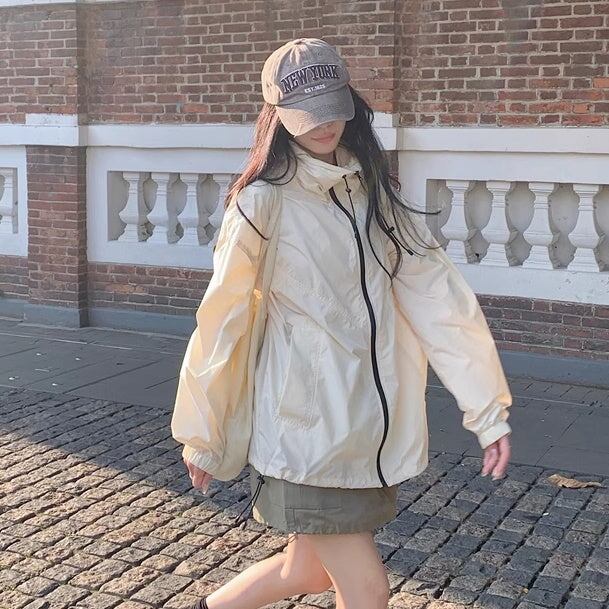 セットアップ ウィンドブレーカースカート レディース 韓国 ファッション ナイロンジャケット ミニスカート? オーバーサイズパーカー 薄手 上下セット 2点