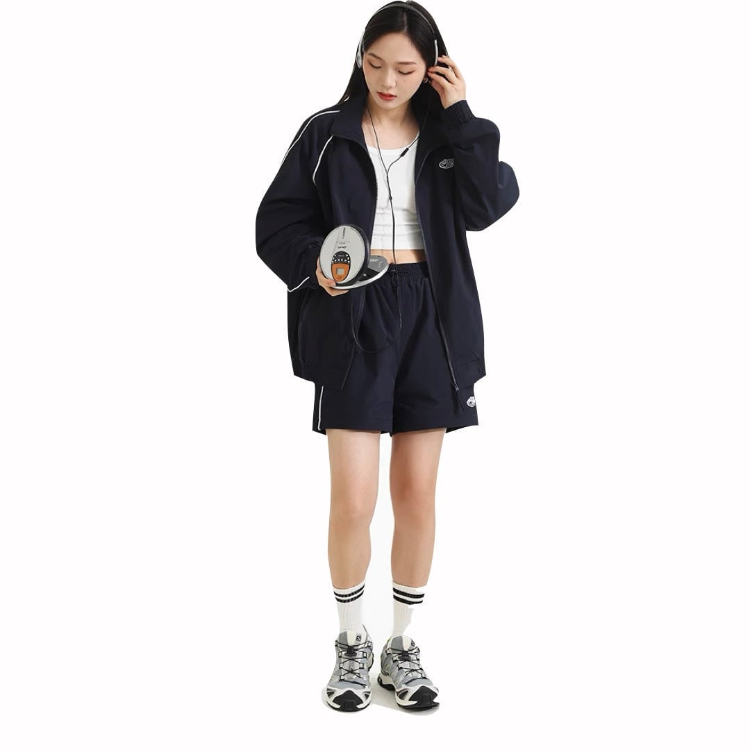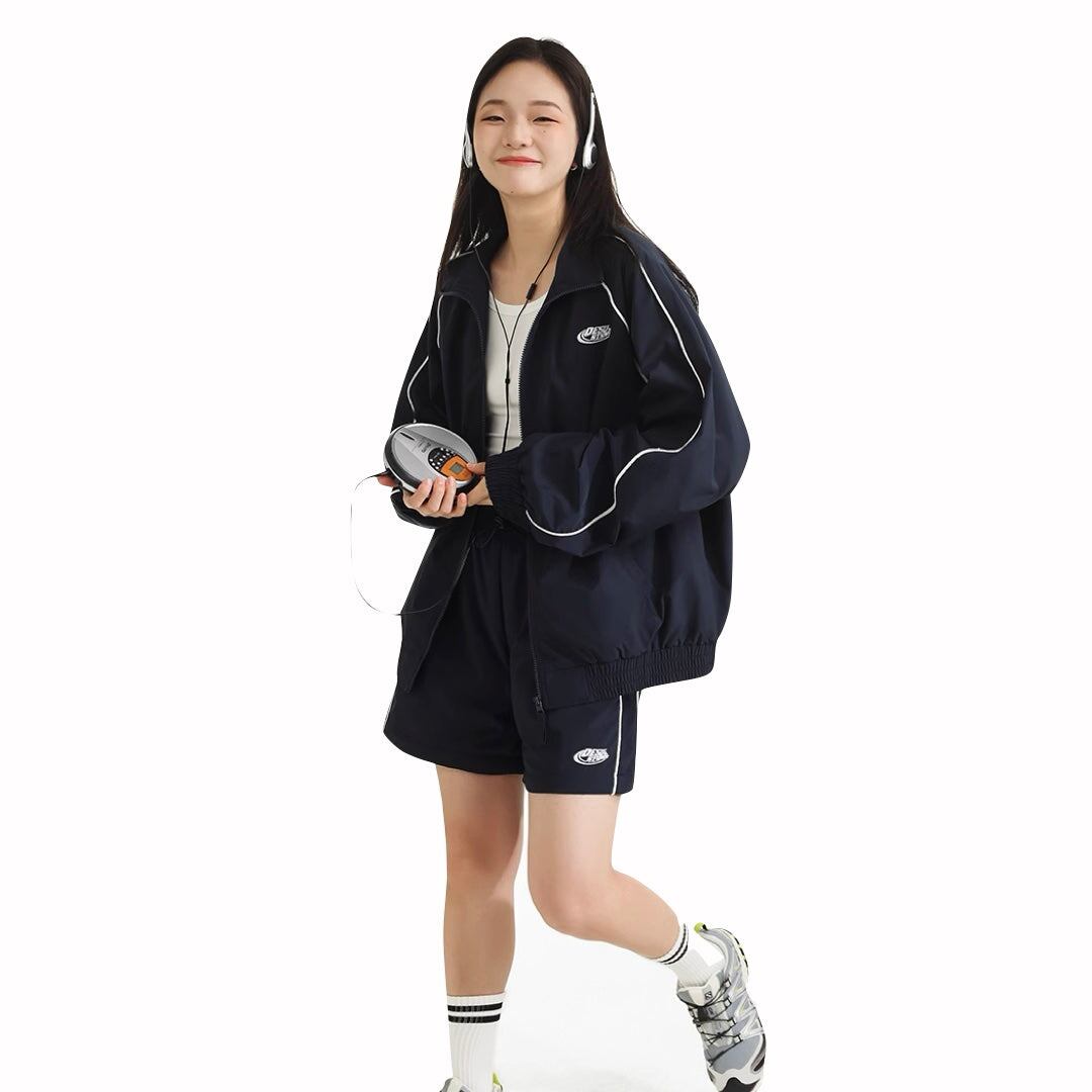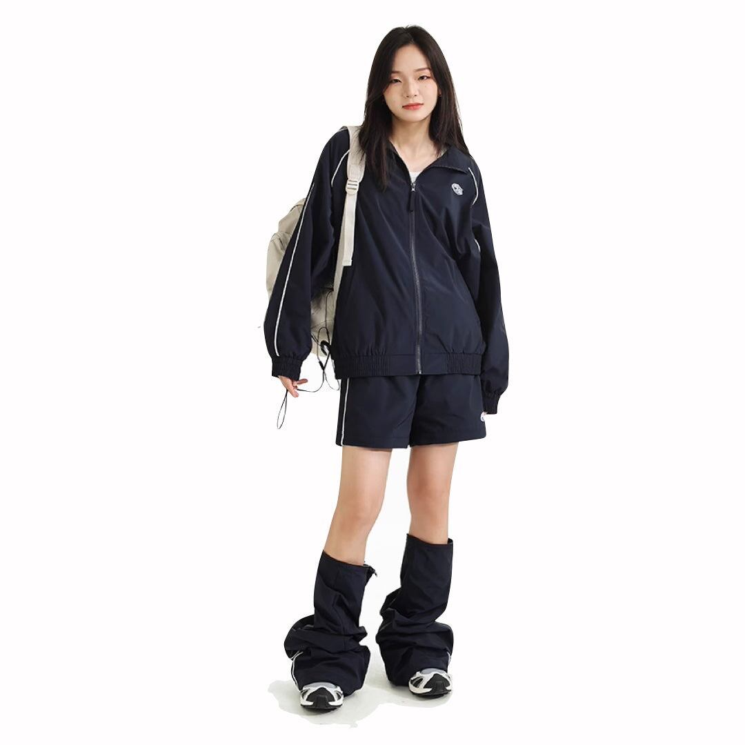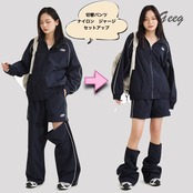 ナイロン ジャージ セットアップ レディース 2WAY ハーフパンツ切替 ファスナー 韓国 ファッション ライン ジャージ トラックジャケット