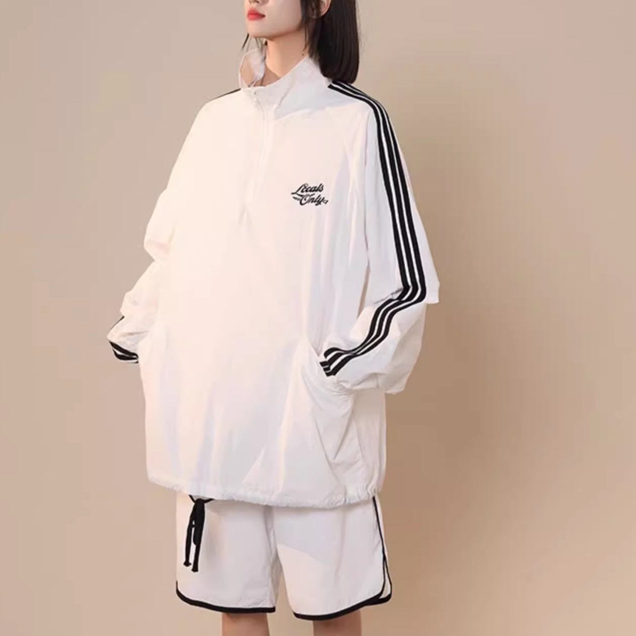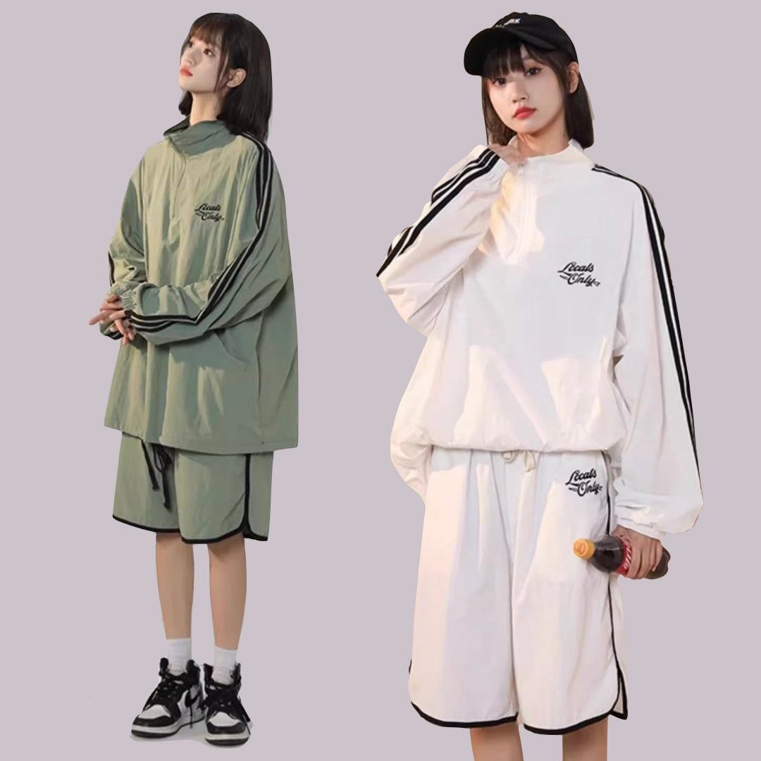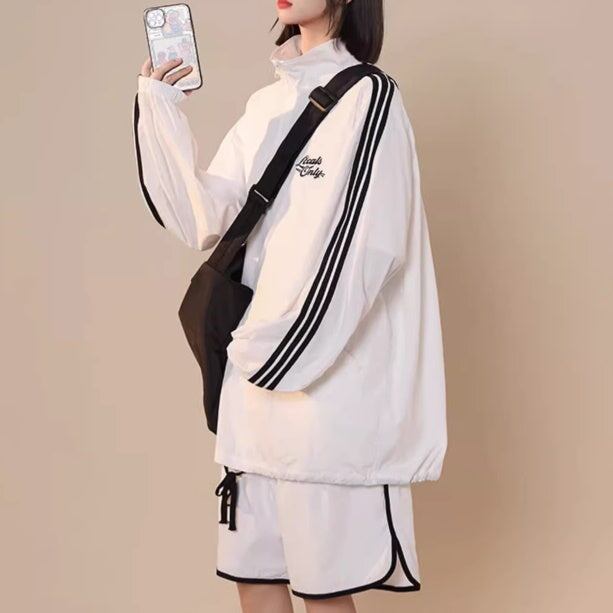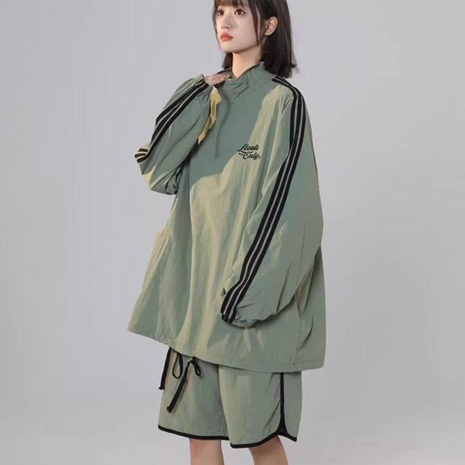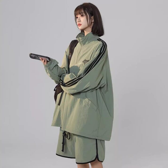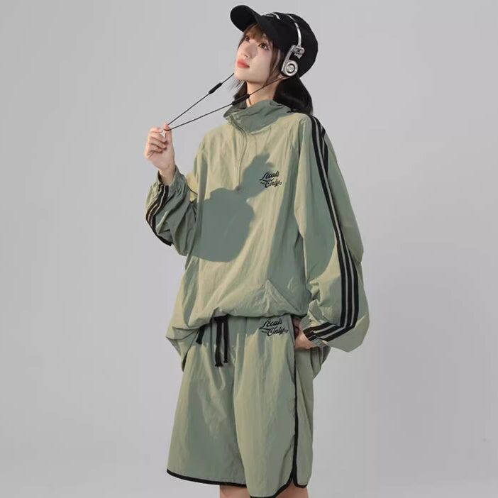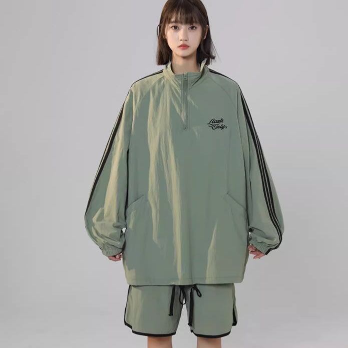 ナイロン ジャージ セットアップ レディース 韓国 ファッション オーバーサイズ サイドライン ナイロンジャケット ハーフパンツ 上下セット