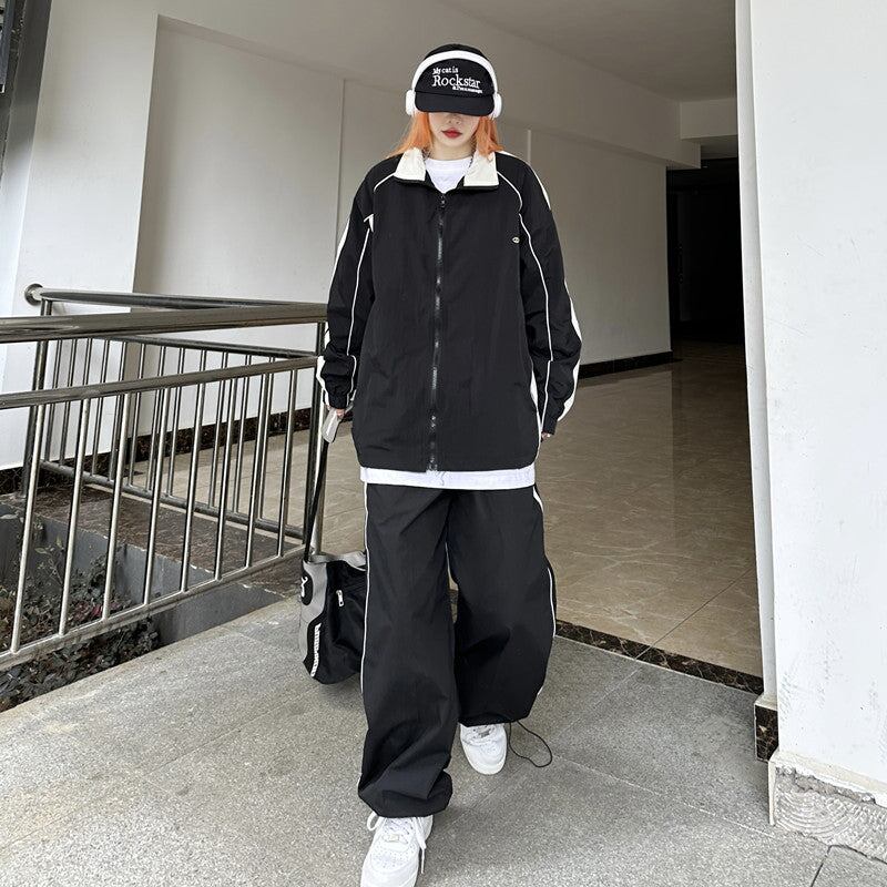 ナイロン ジャージ セットアップ レディース 韓国 ファッション オーバーサイズ ナイロンジャケット ナイロンパンツ ストリート スポーツウェア