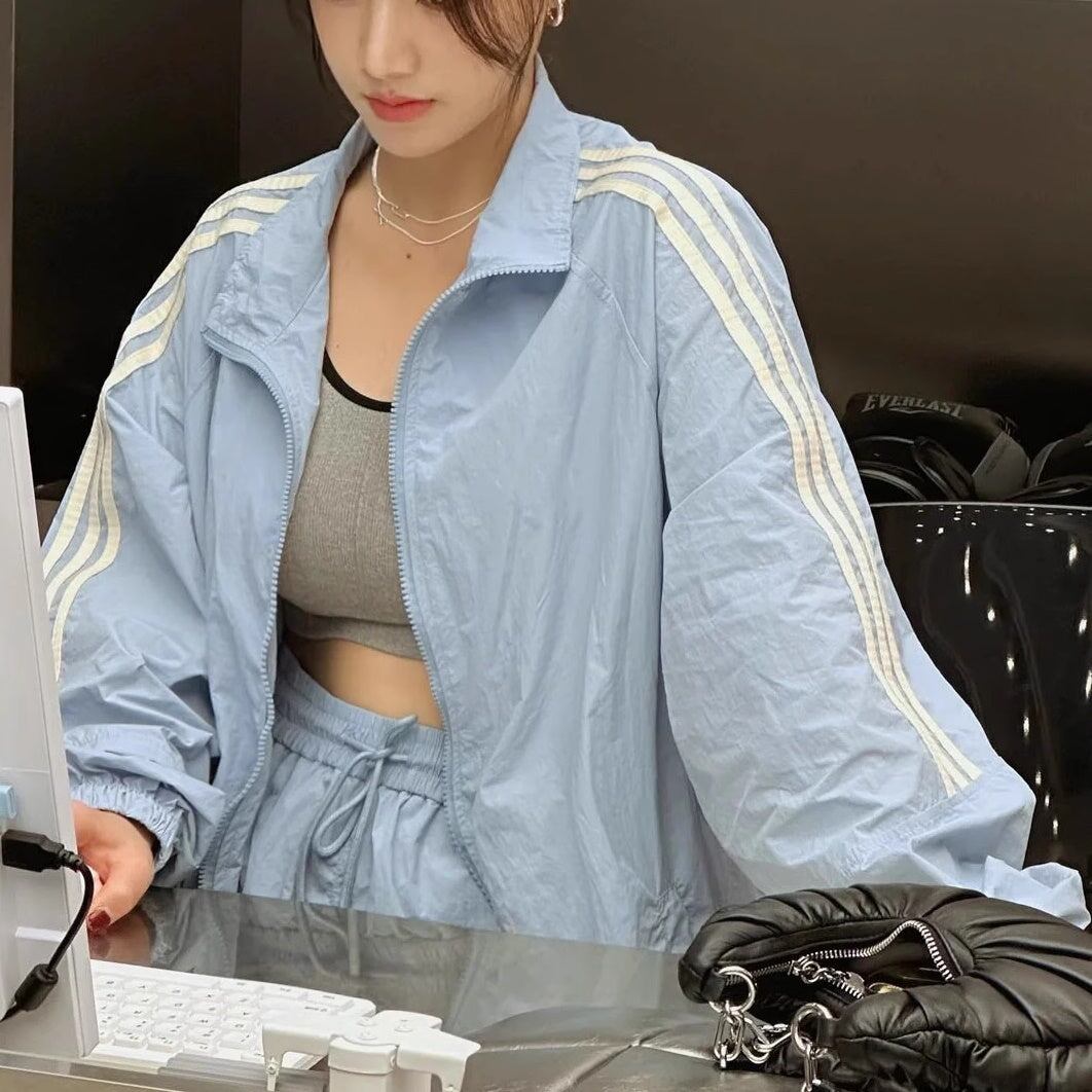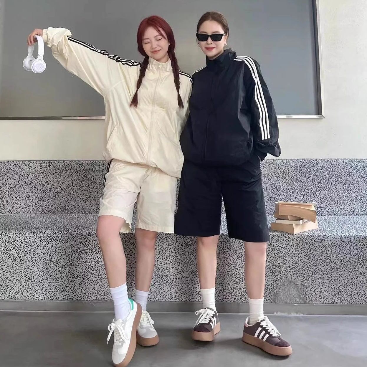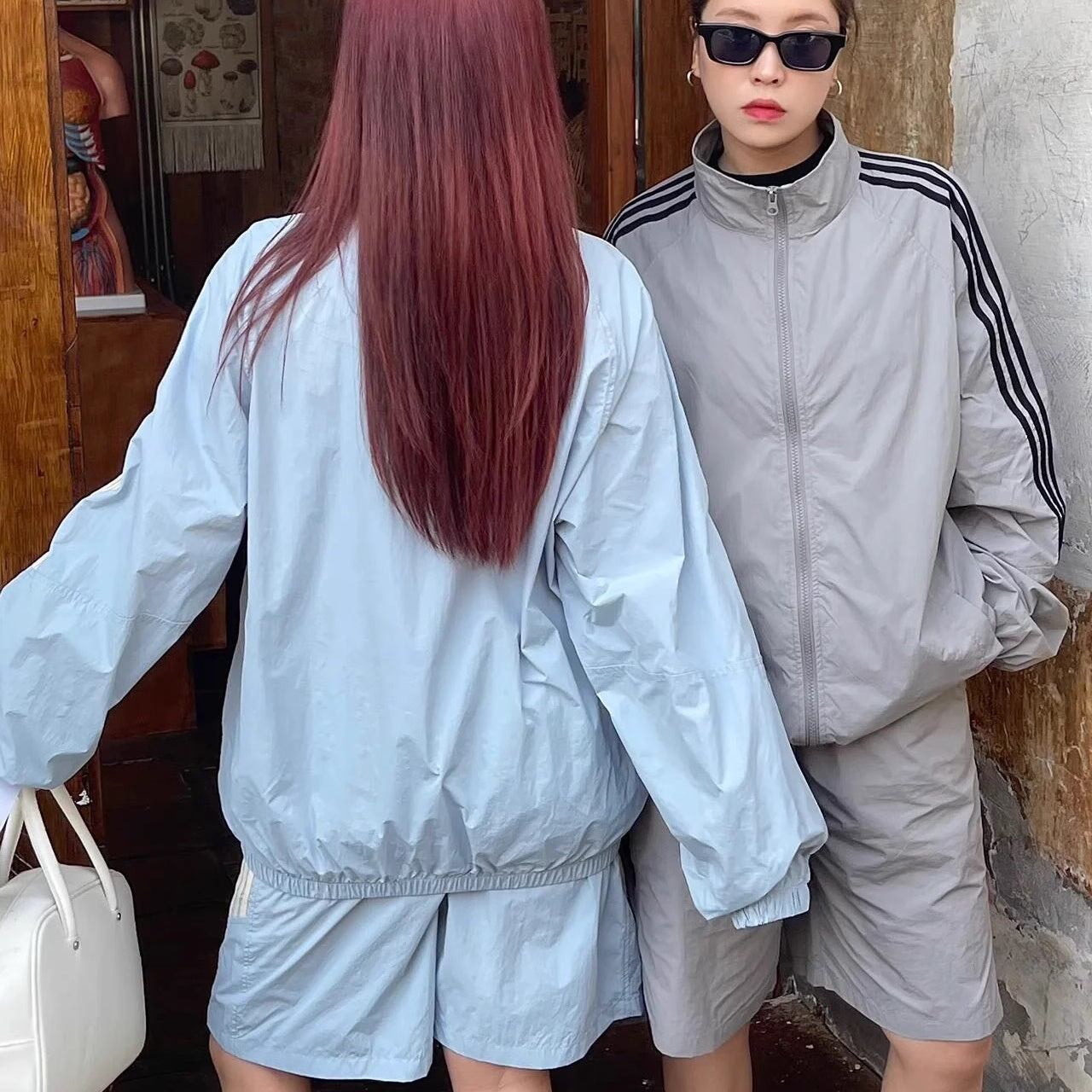ジャージセットアップ レディース 韓国 ファッション ハーフパンツ ナイロン ジャージ ジャケット トラックジャケット サイドライン ストライプ