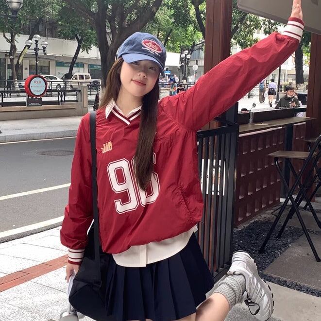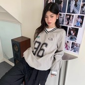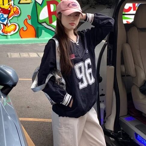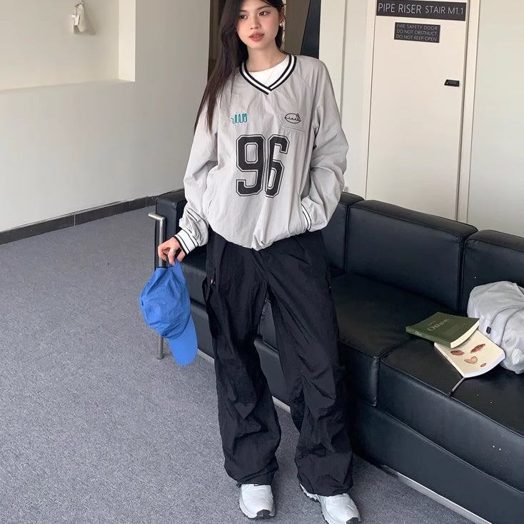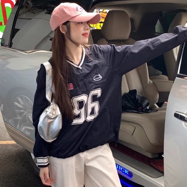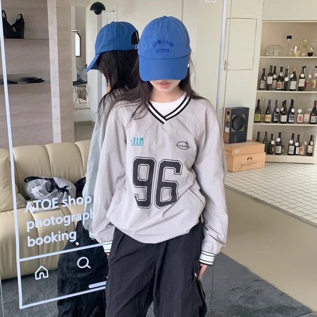 ナイロン トレーナー レディース Vネック ベースボールシャツ 韓国 ファッション シャカシャカ スポーティー プルオーバー