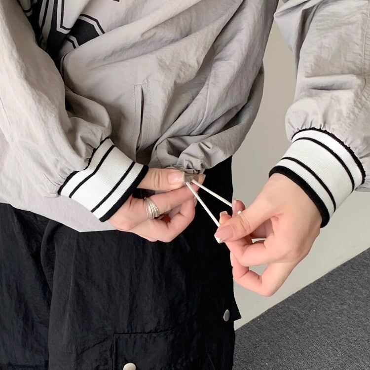 Vネック Tシャツ レディース 韓国 ファッション カレッジコーデ 重ね着 春 長袖 シャカシャカ ウィンドブレーカー プルオーバー 防風