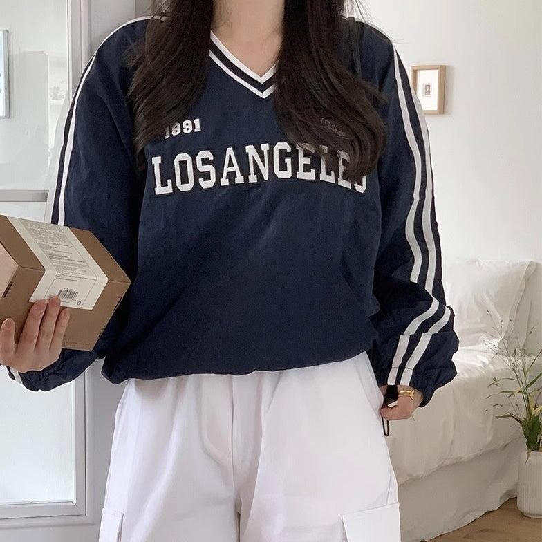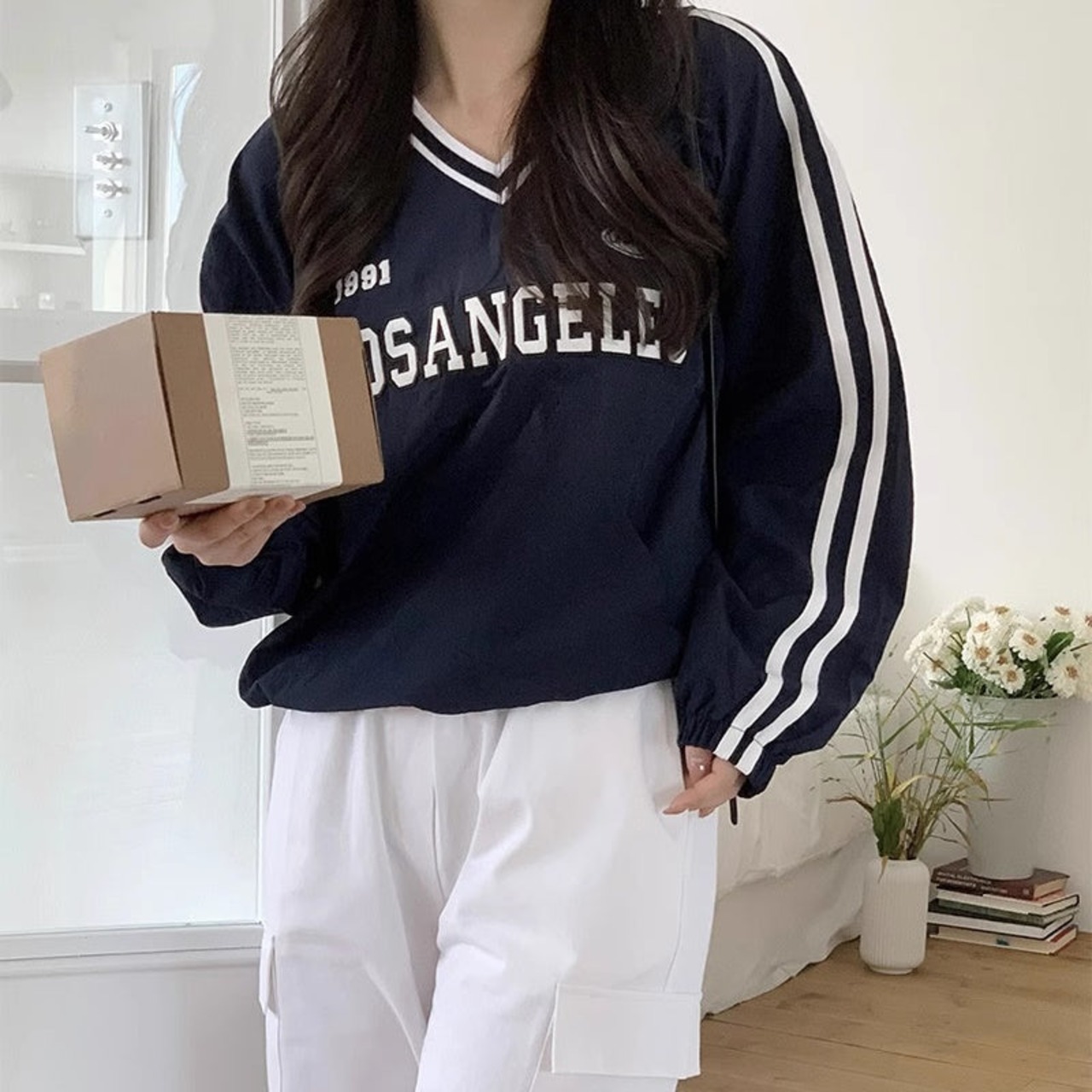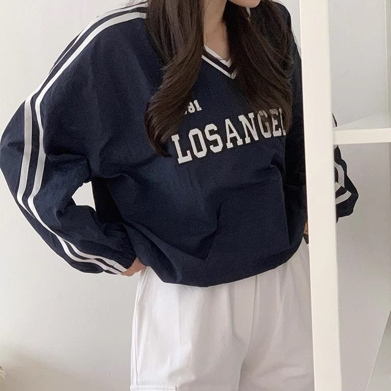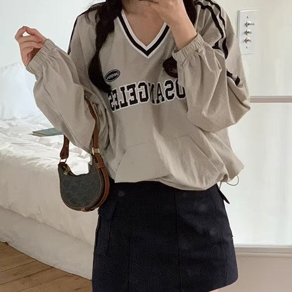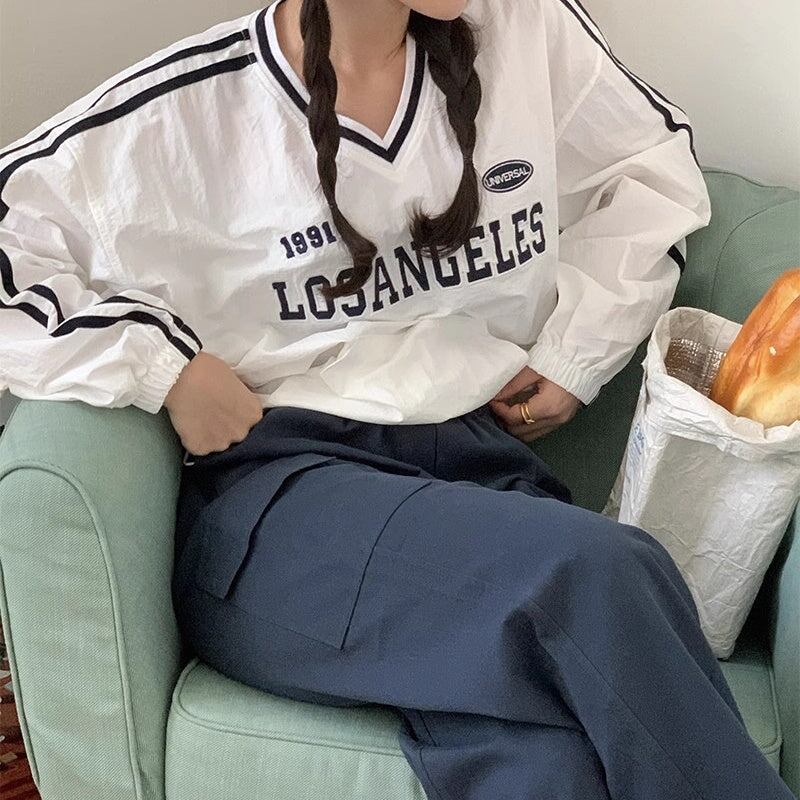 ナイロン トレーナー レディース 韓国 ファッション Vネックライン スポーティ オーバーサイズ ドローコード トップス