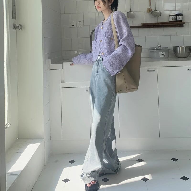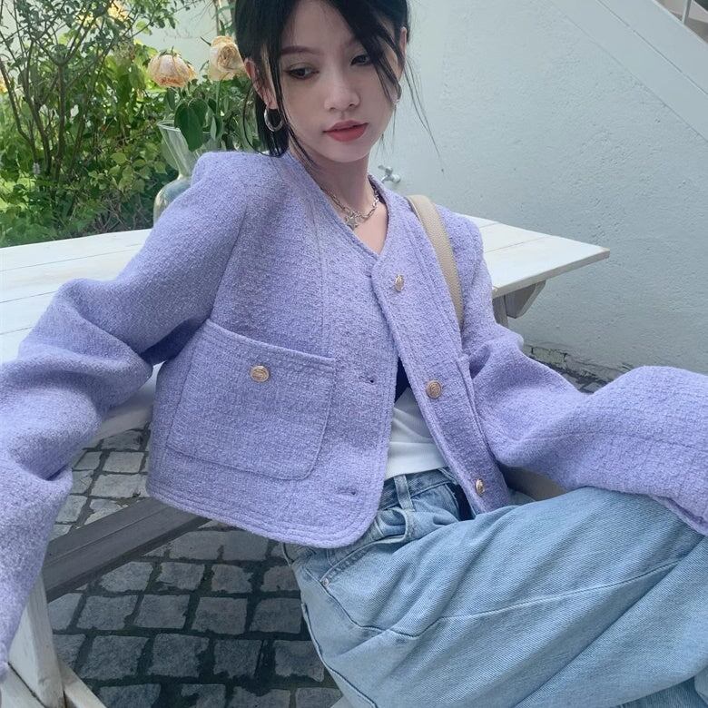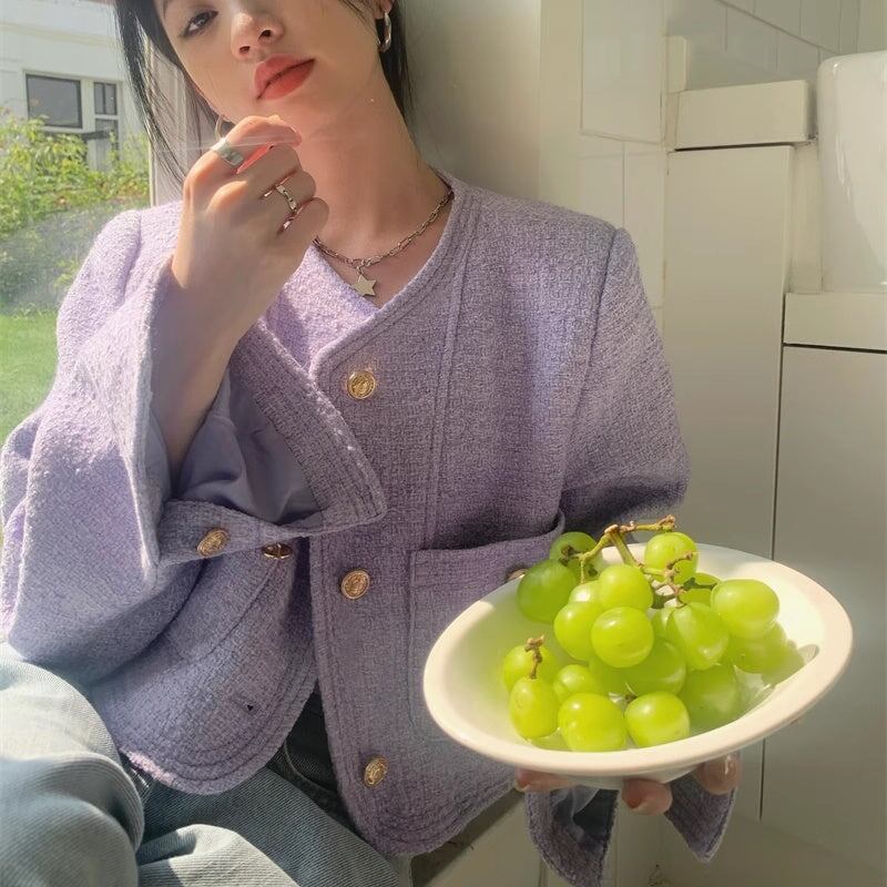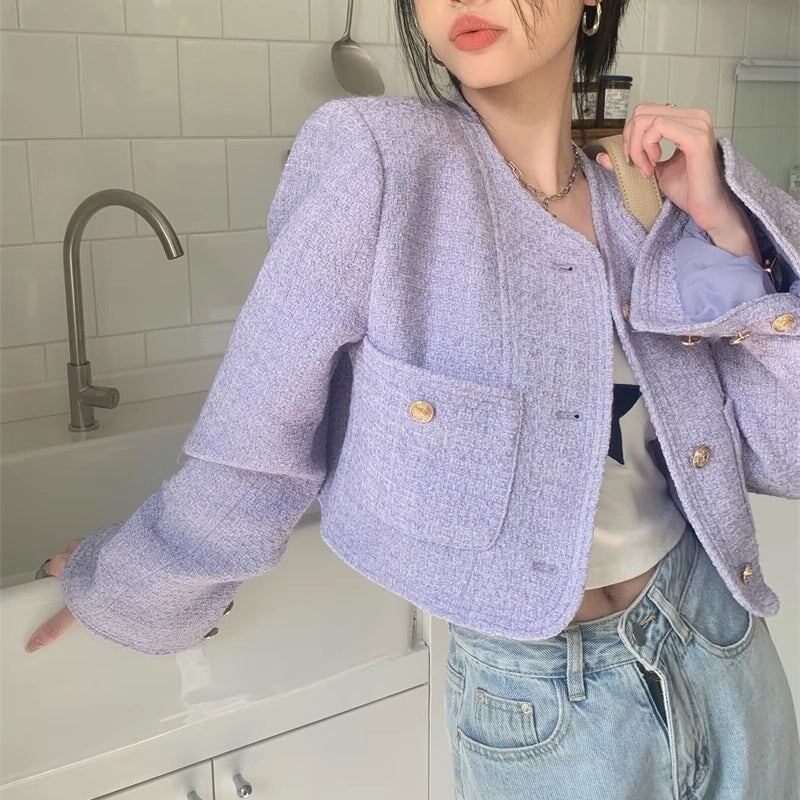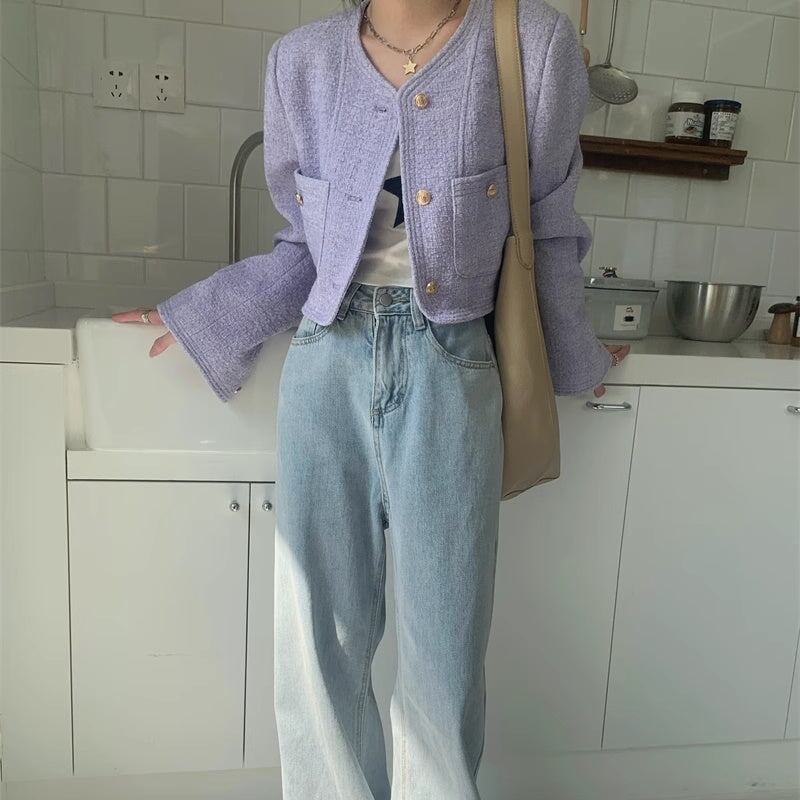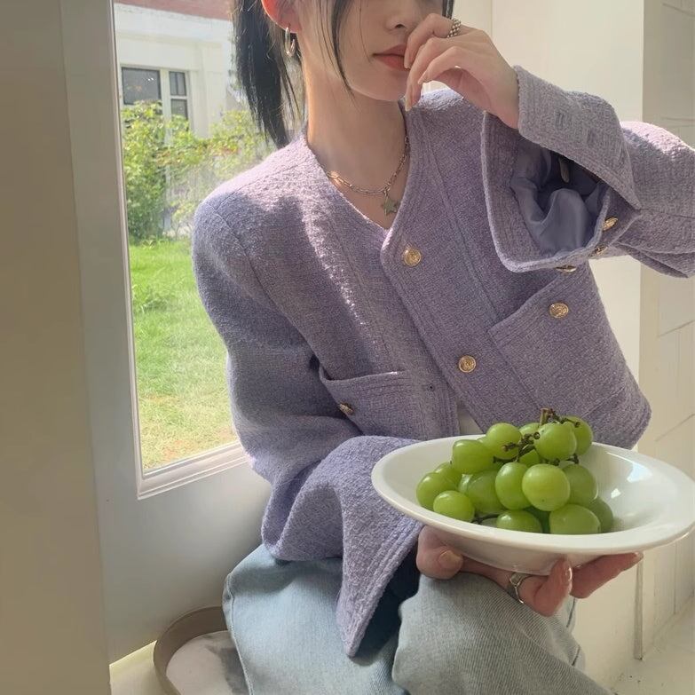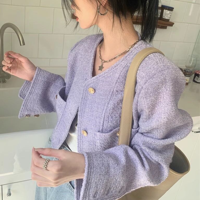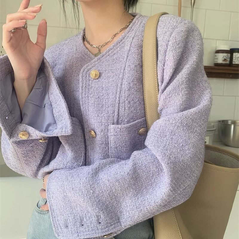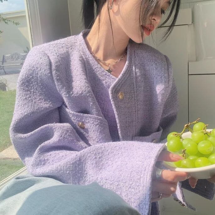 ノーカラ—ジャケット レディース 韓国 ファッション 金ボタン ジャケット ブルゾン カーディガン ツイード ショート丈 おしゃれ 春 アウター きれいめ 大人