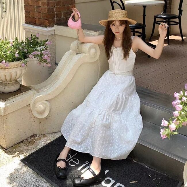 ノースリーブ セパレート ワンピース 韓国 夏 セットアップ レース ワンピ 上下セット 白コーデ クロップドトップ マキシ ワンピース