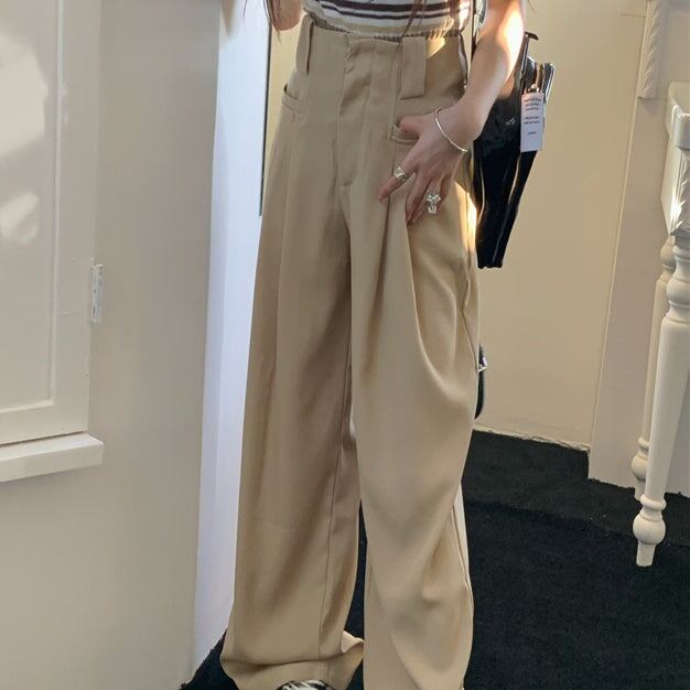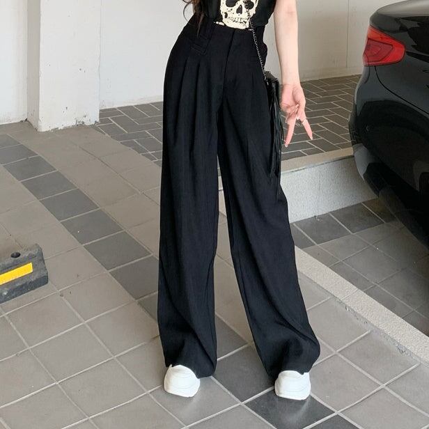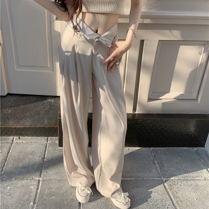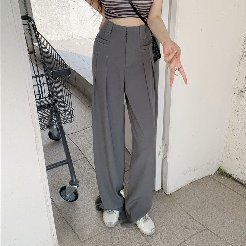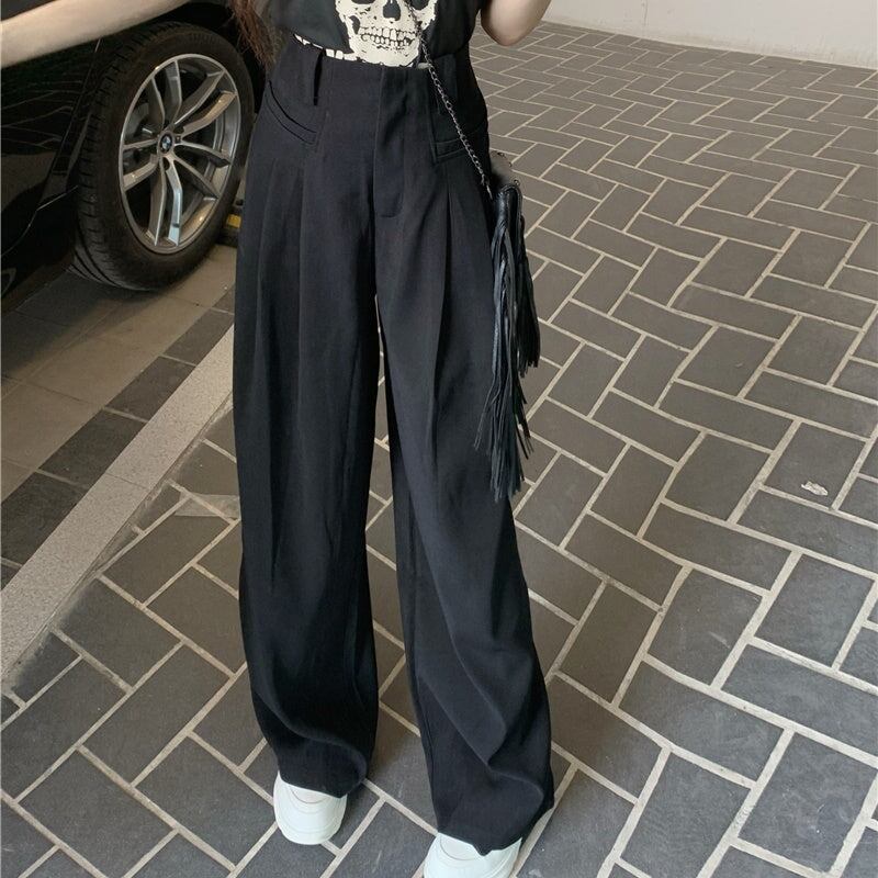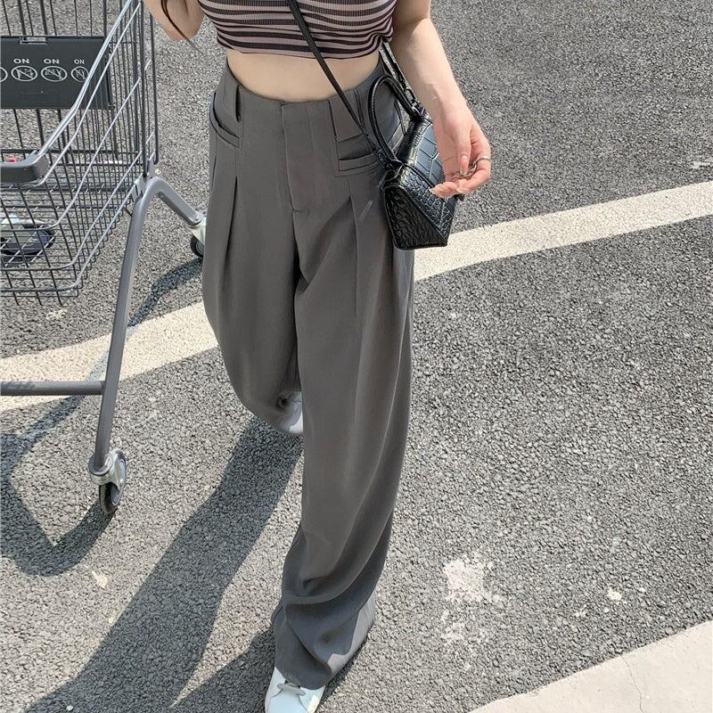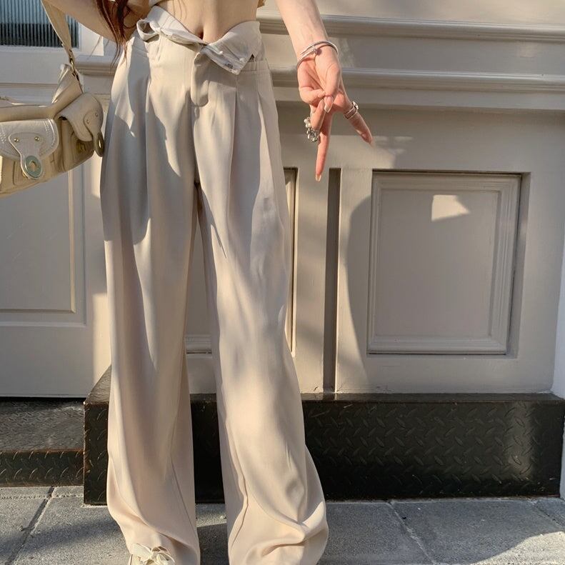 ワイドパンツ ハイウエスト レディース 韓国 ファッション ロングパンツ 春ボトム ツータック 無地 春パンツ