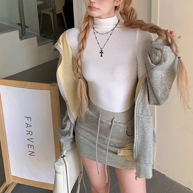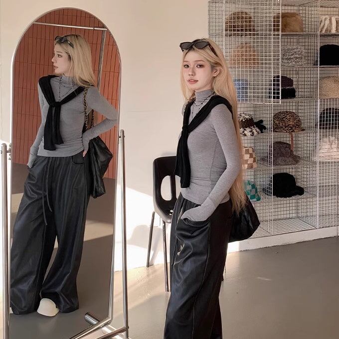 ハイネックのタイトトップス