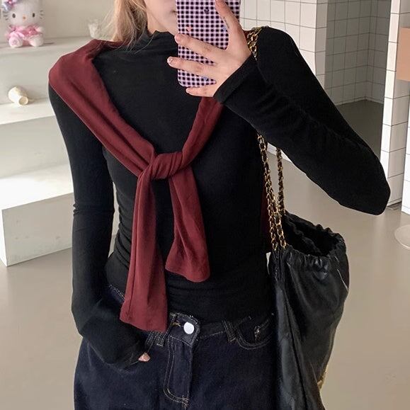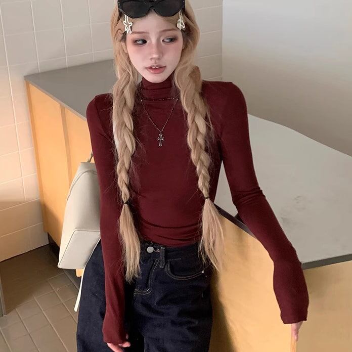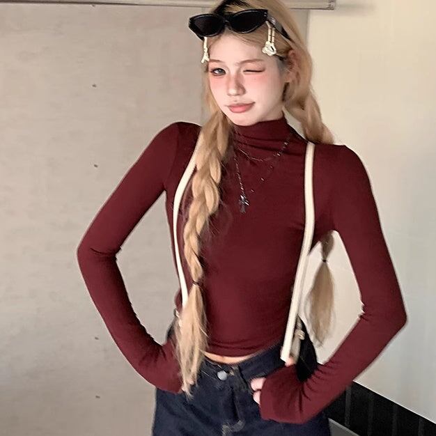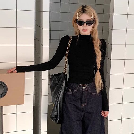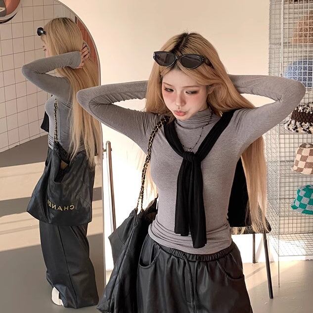 Tシャツ? ハイネック レディース 韓国 ファッション 長袖 無地 ストレッチ ロング袖 カットソー 薄手 重ね着 レイヤード