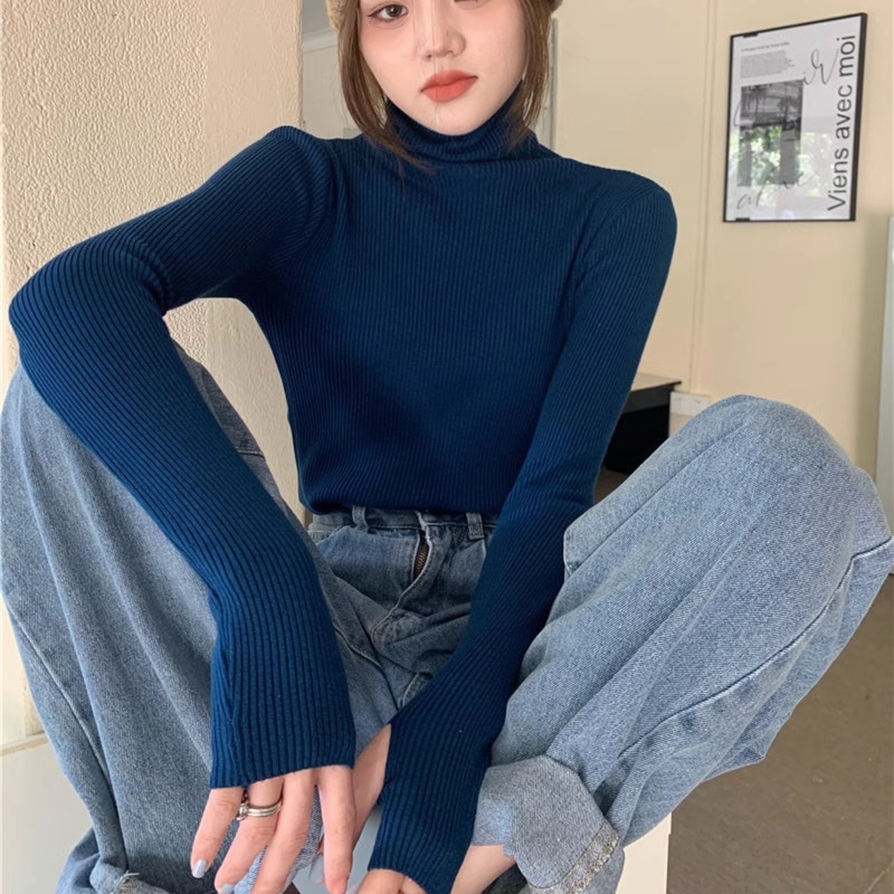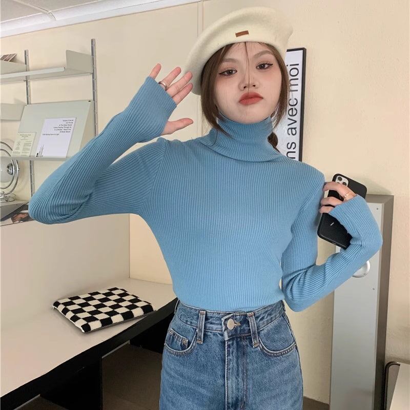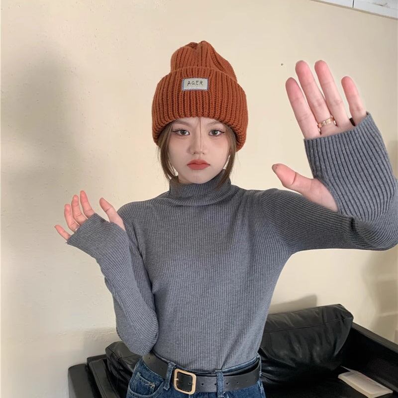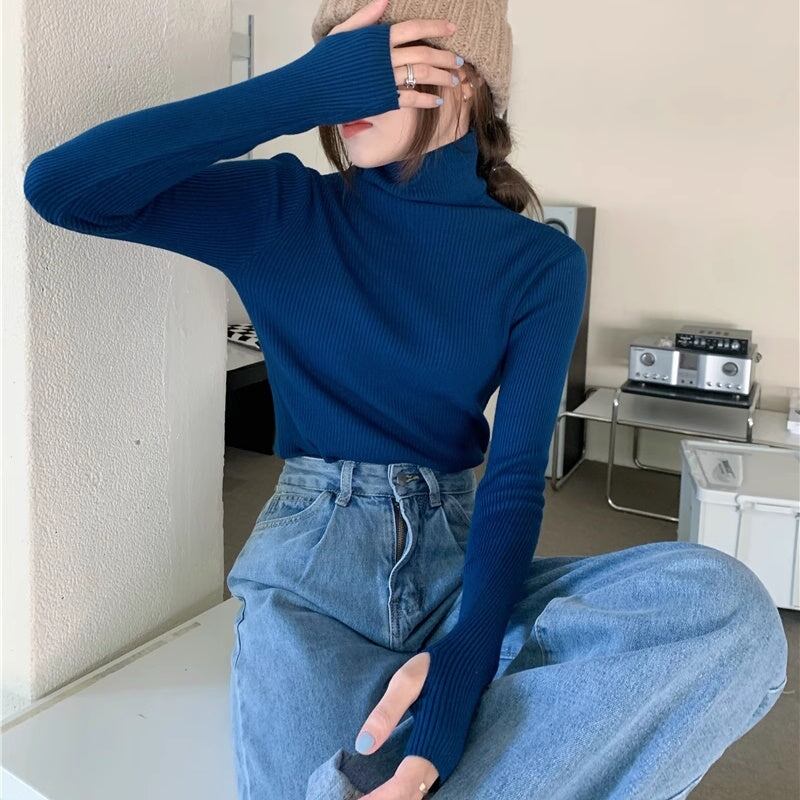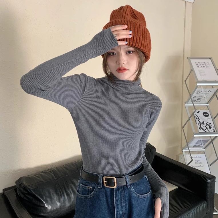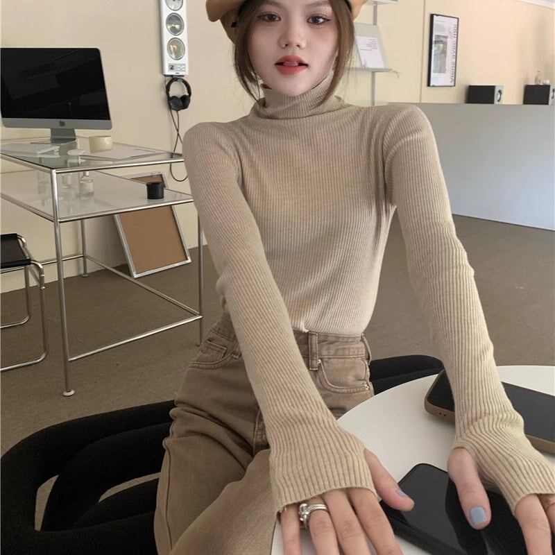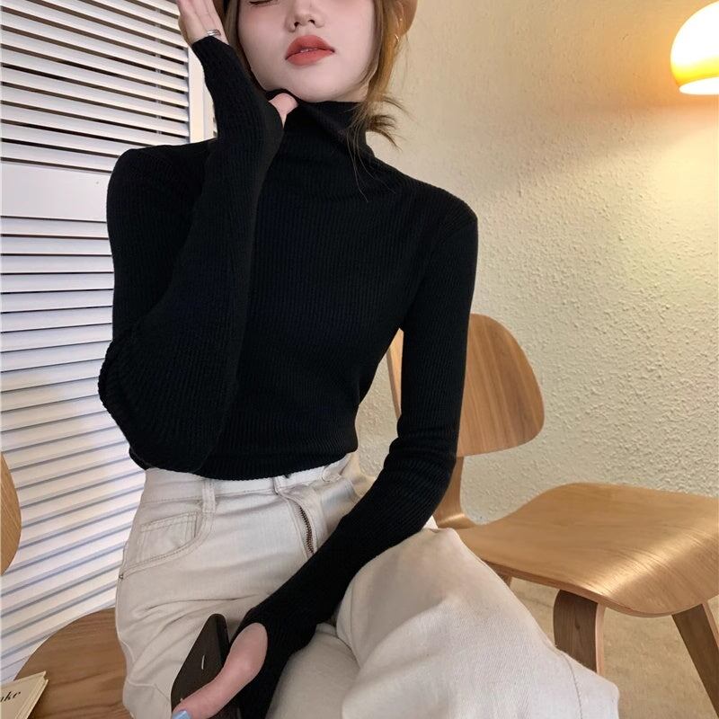 ハイネック ニット レディース 韓国 ファッション 指ぬき サムホール カラー豊富 リブニットソー