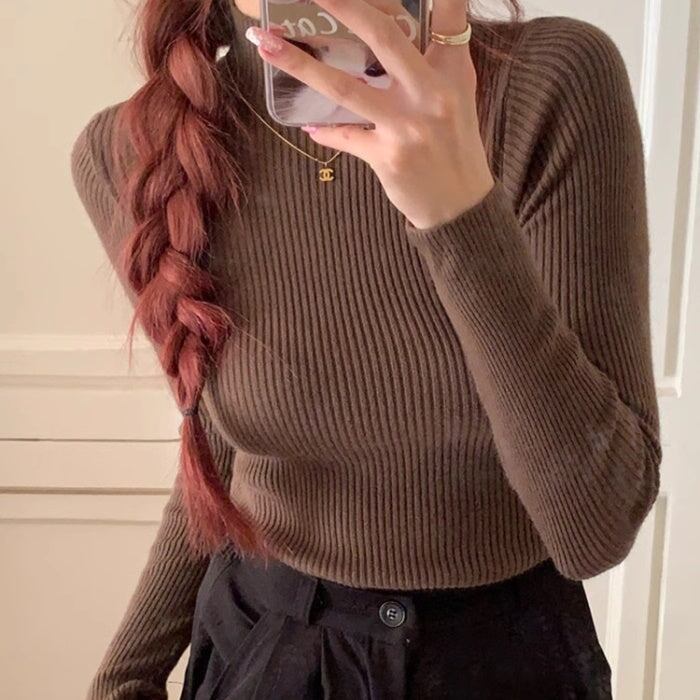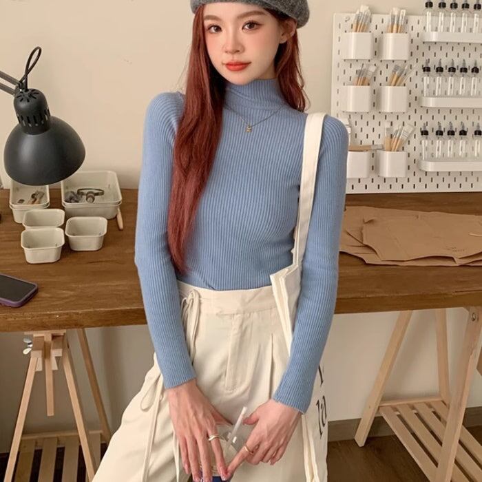 ハイネック ニット レディース 韓国 ファッション 選べる カラー タイト ストレッチ リブニット 冬 トップス