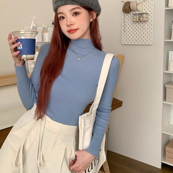 ハイネックニット レディース 韓国 ファッション カラー豊富 シャーベットカラー ニュアンスカラー 秋冬 ストレッチ トップス