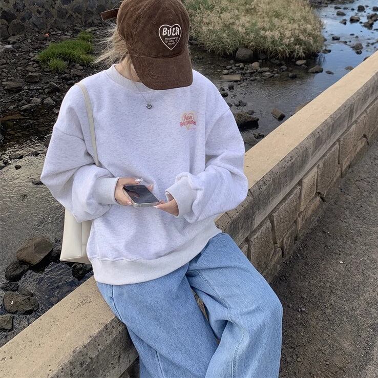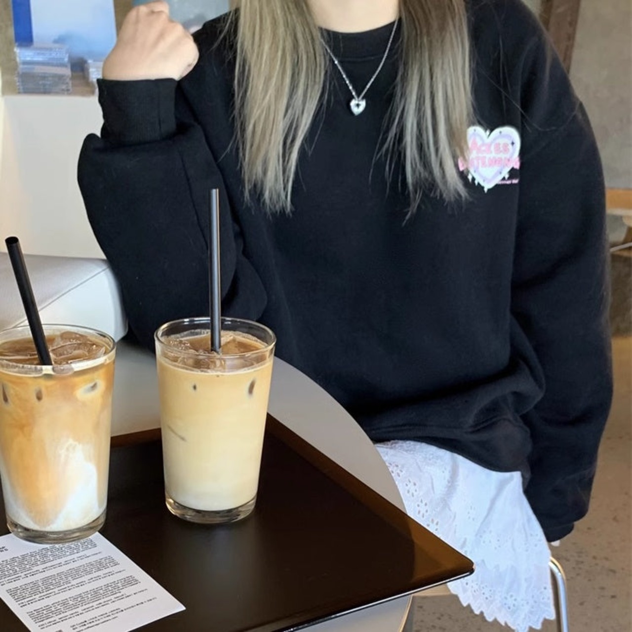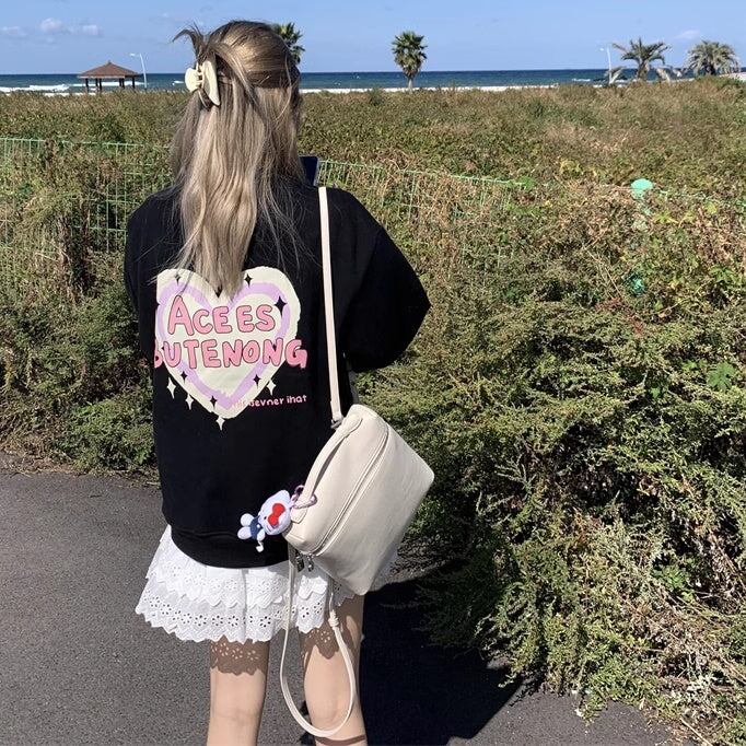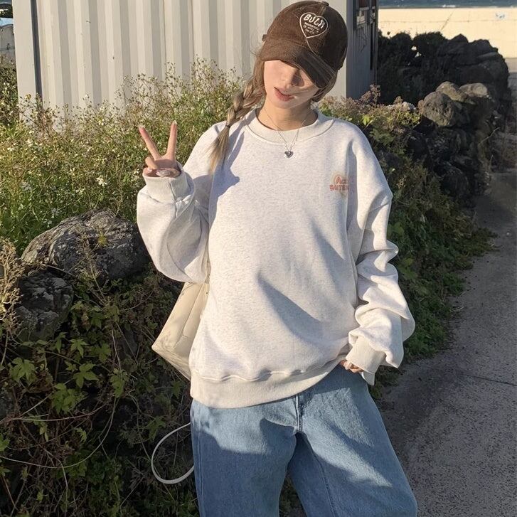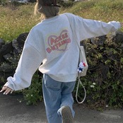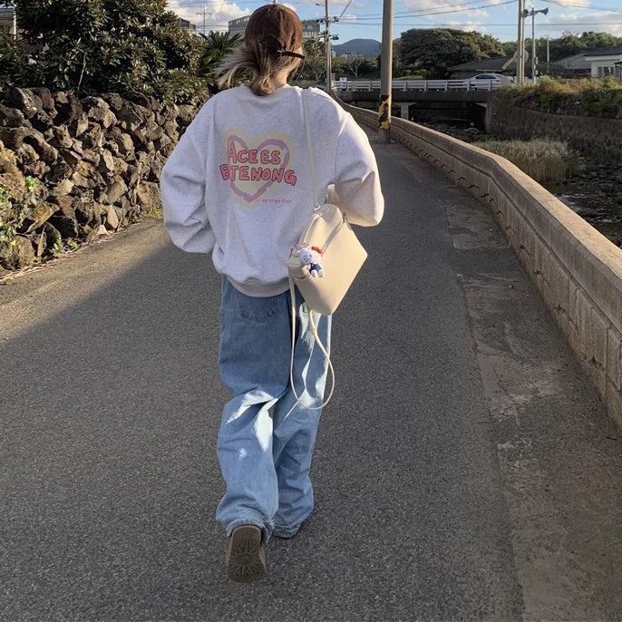 ハート プリント トレーナー レディース 韓国 ファッション バックロゴ オーバーサイズ ガーリー スウェット バックシャン キラキラ トップス 裏起毛