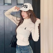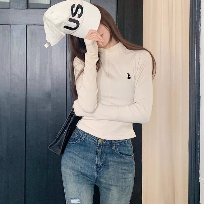 ハーフジップのハイネック♪開けるとVネックポロ襟に