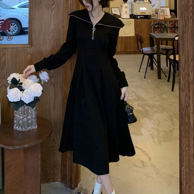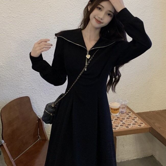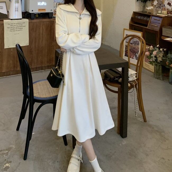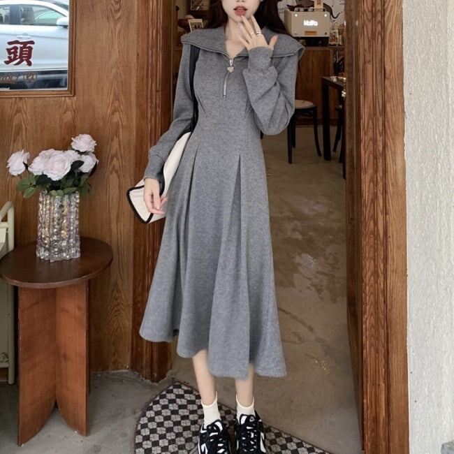 ポロワンピース Aライン 長袖 レディース 韓国 ファッション カットソー フレアワンピース ハーフジップ ハートチャーム