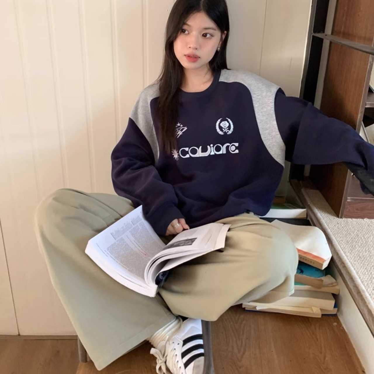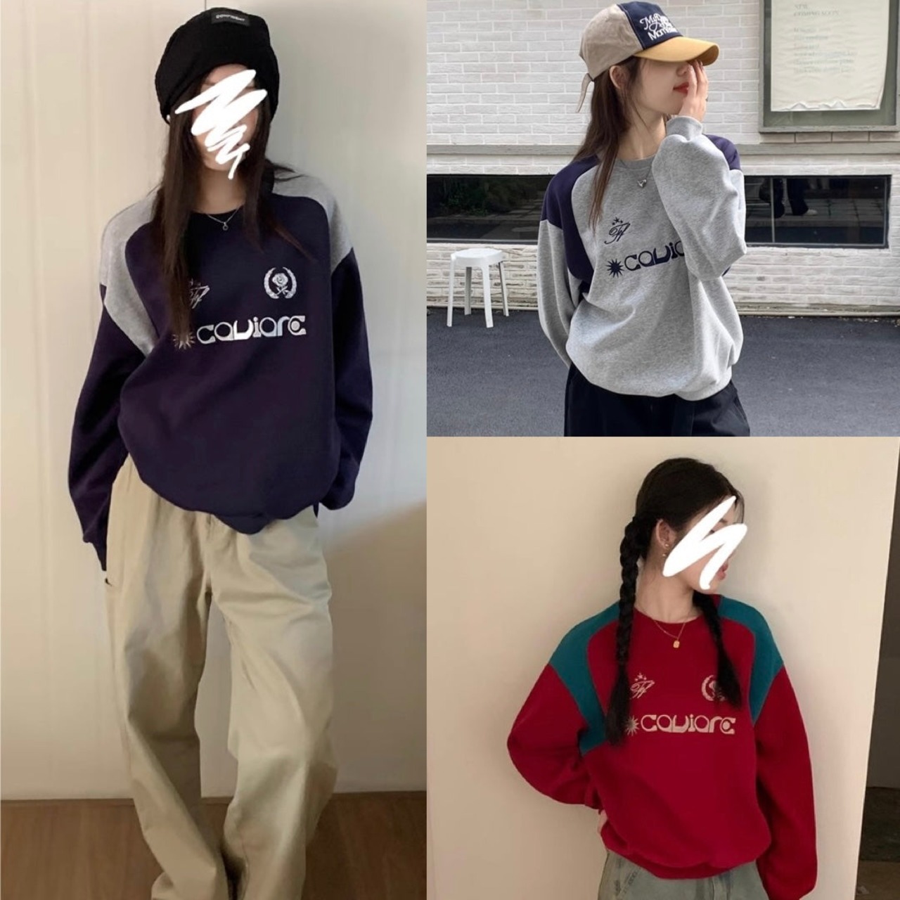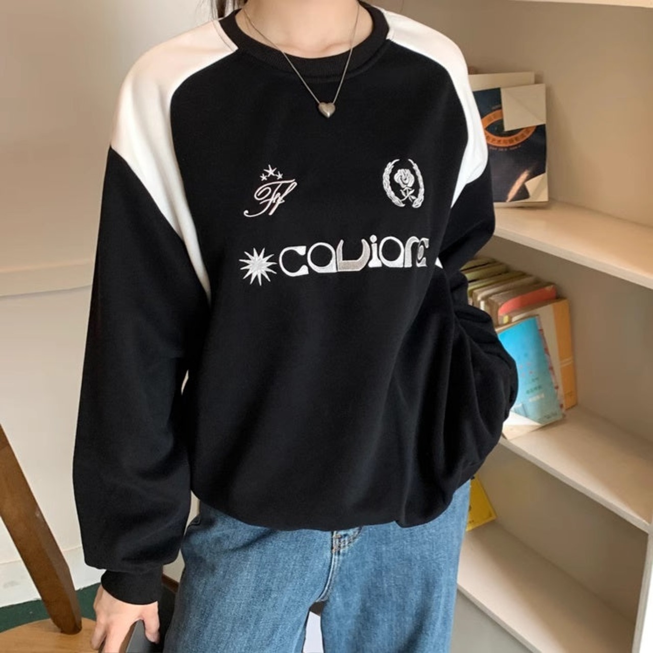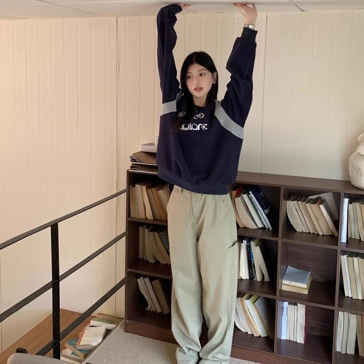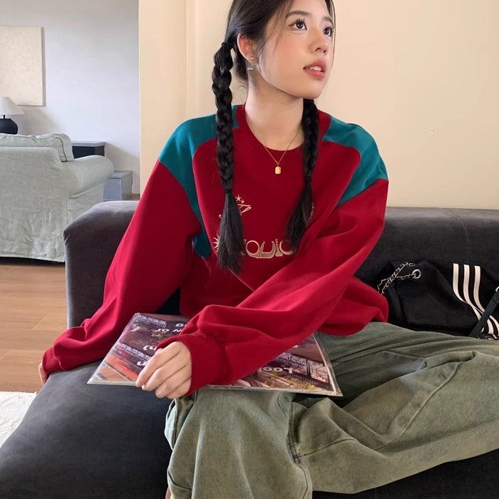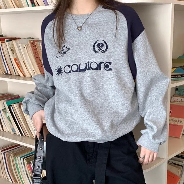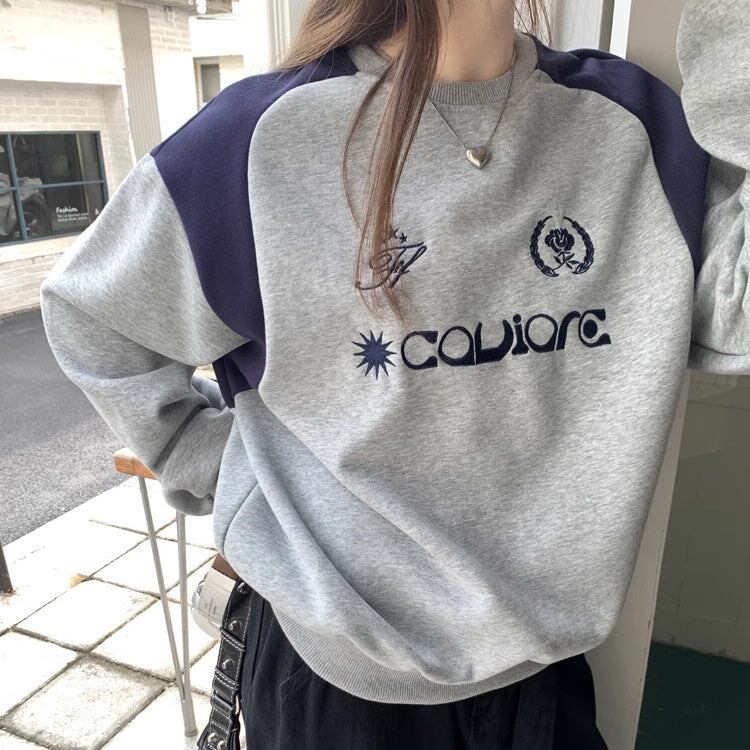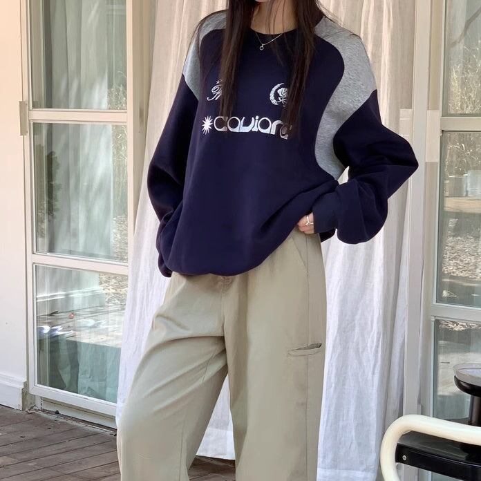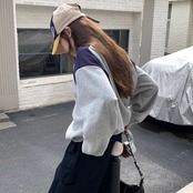 バイカラー ロゴ スウェット トレーナー レディース 韓国 ファッション レトロ ストリート オーバーサイズ トップス