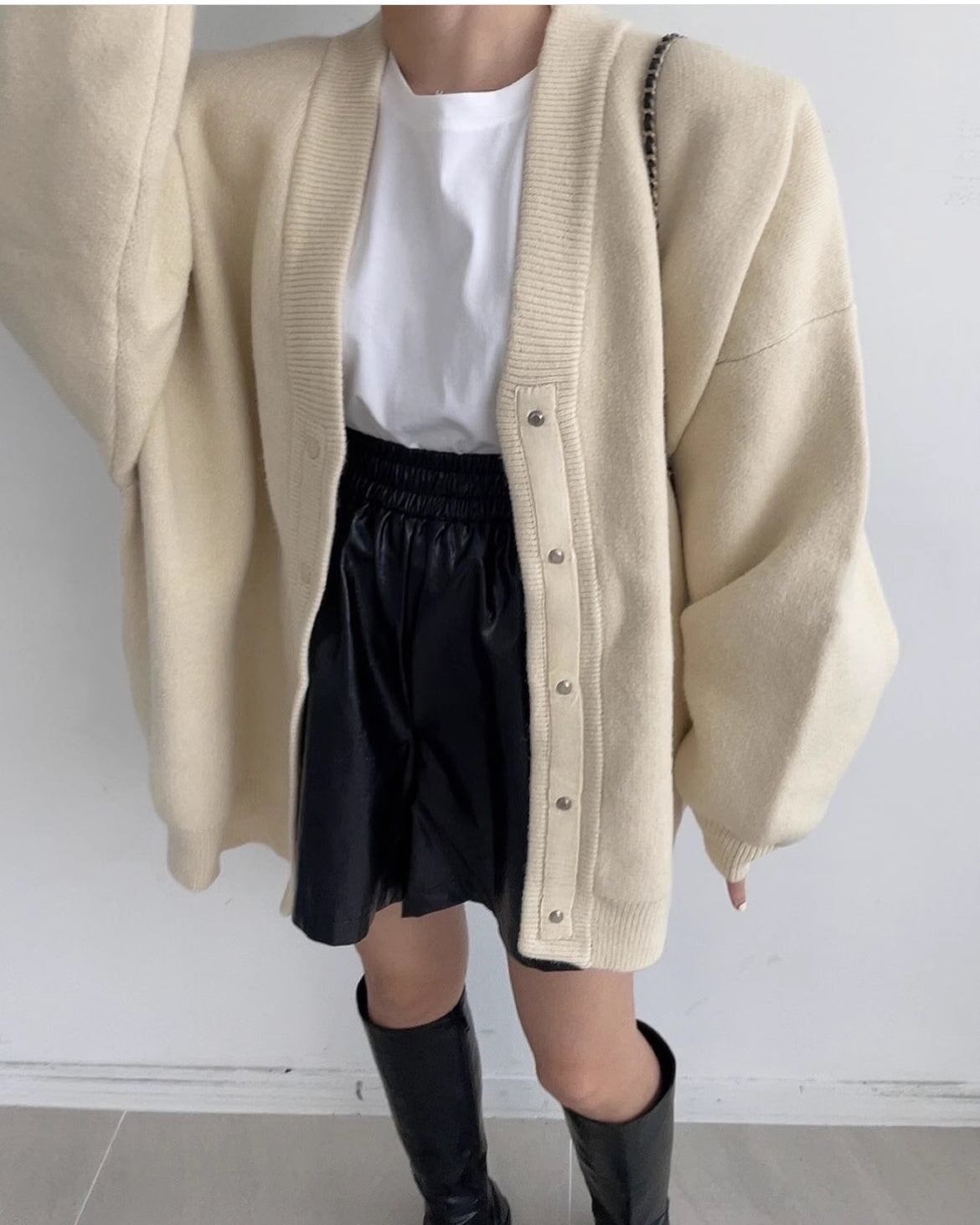 カーディガン レディース 韓国 ファッション ニットジャケット スナップボタン ロゴ バックシャン Vネック 厚手 ニットトップス 秋冬アイテム 大人カジュアル