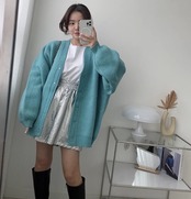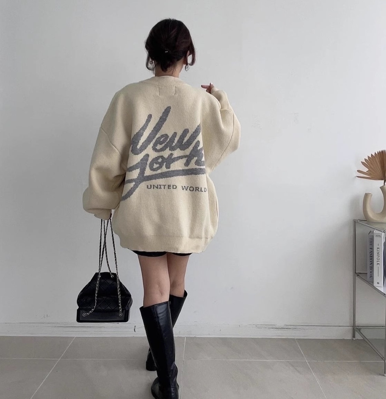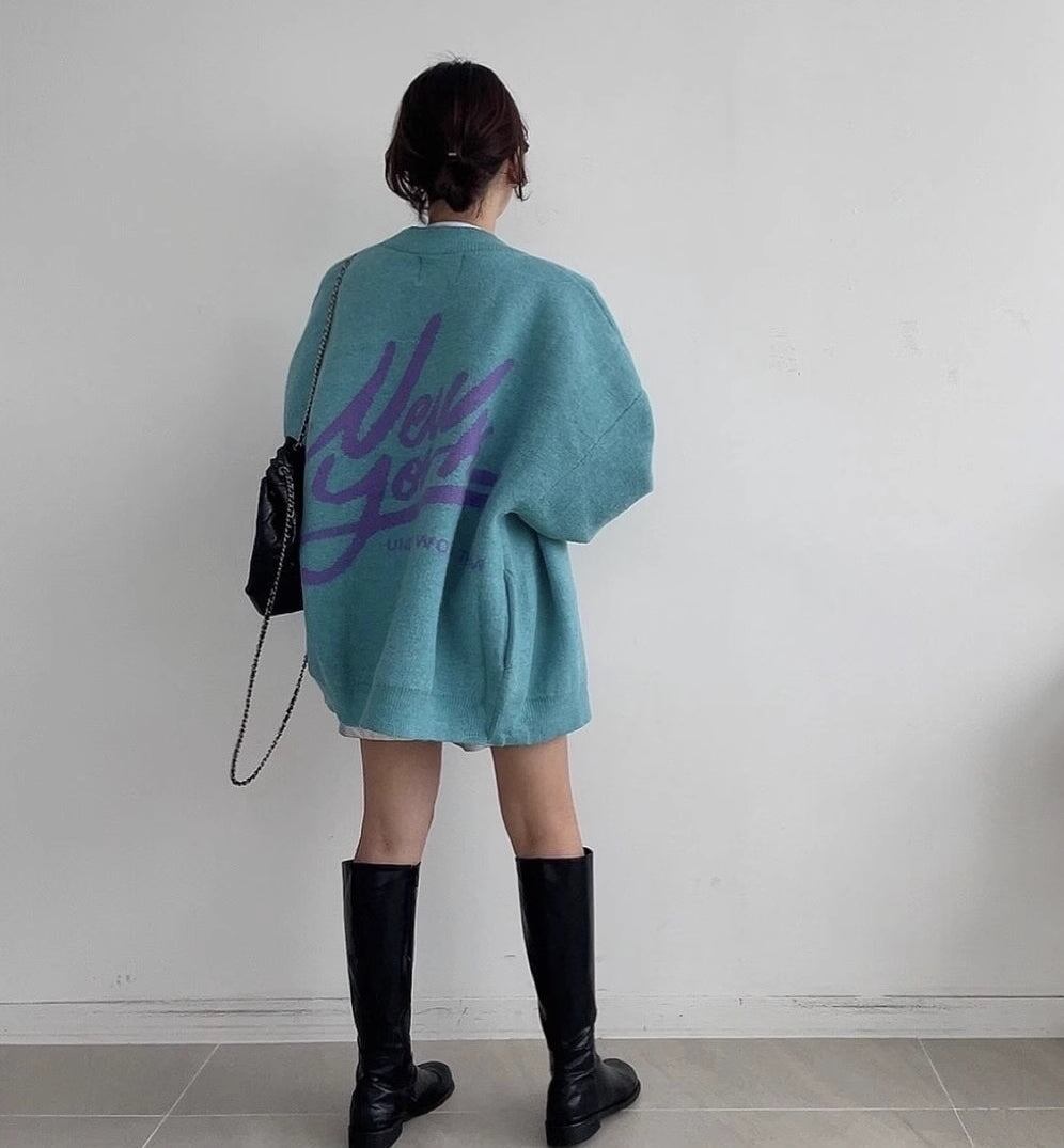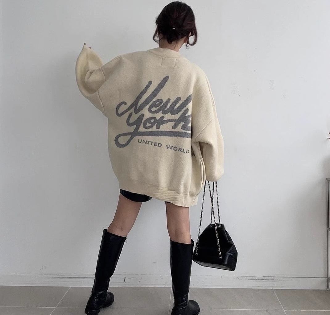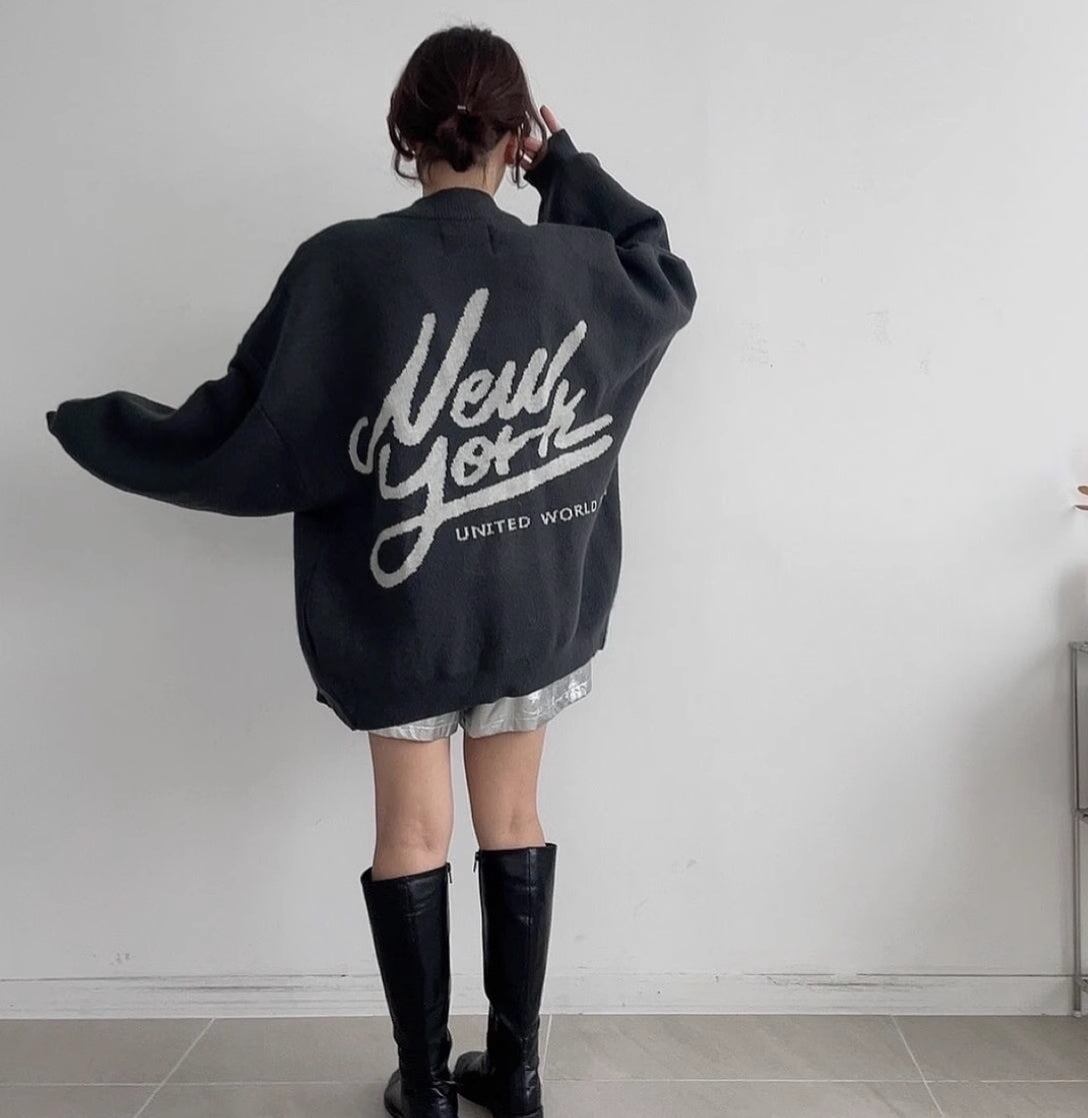 バック ロゴ ニット カーディガン レディース 韓国 ファッション ビッグシルエット ニットカーディガン