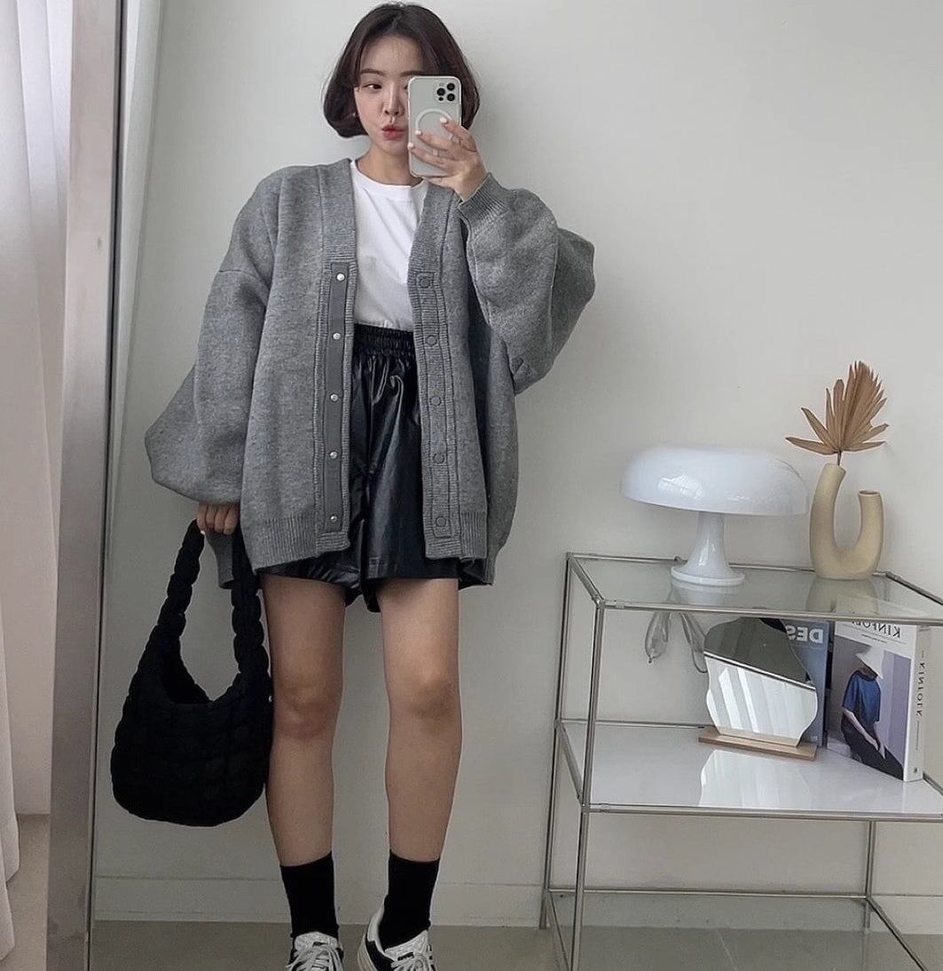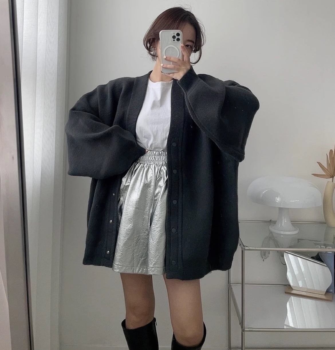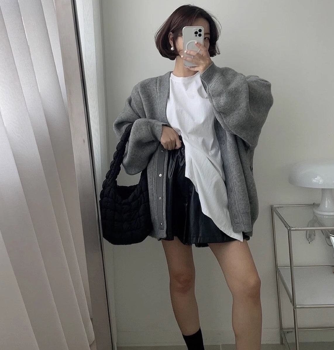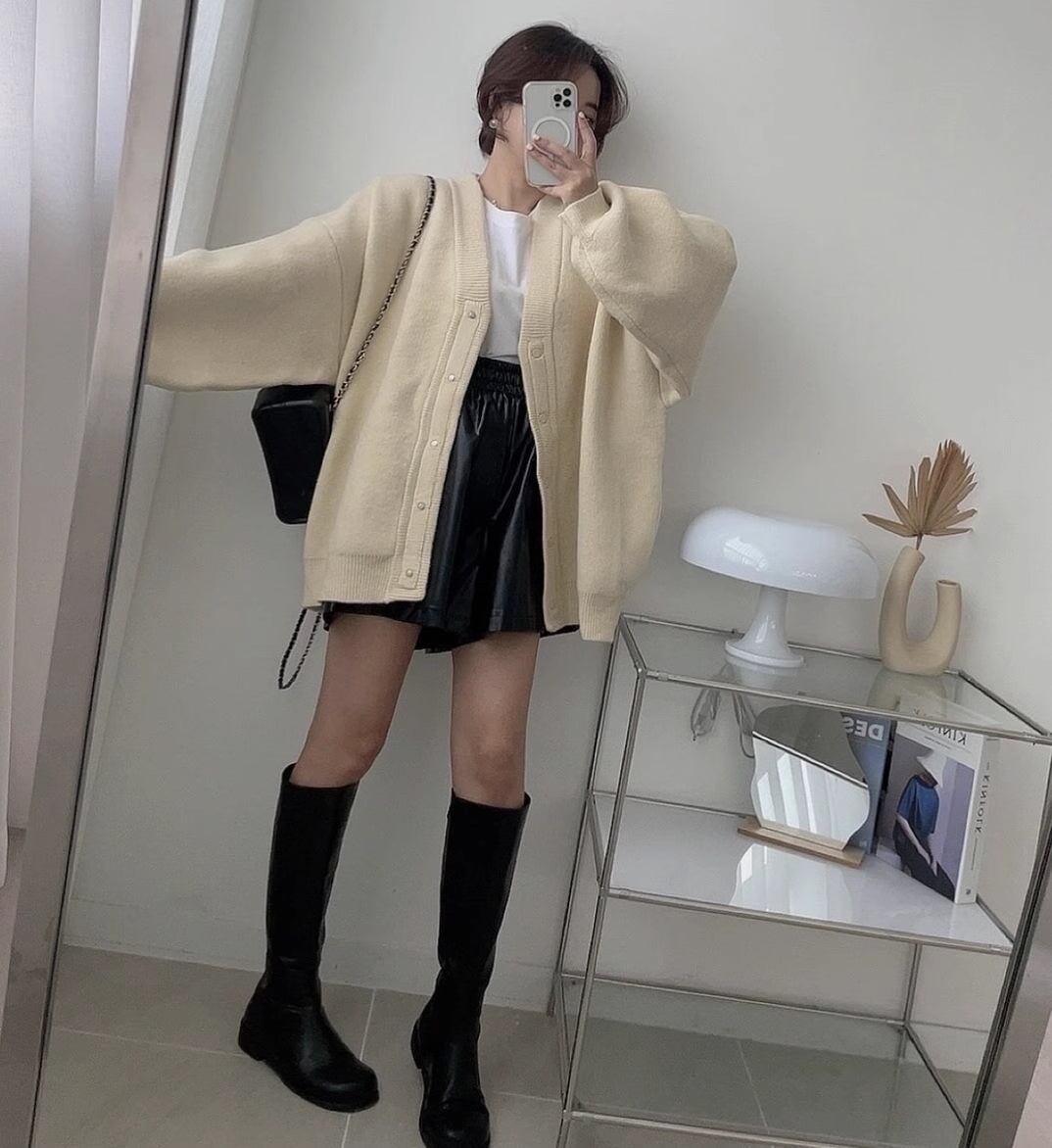 バック ロゴ ニット カーディガン レディース 韓国 ファッション ビッグシルエット ニットカーディガン