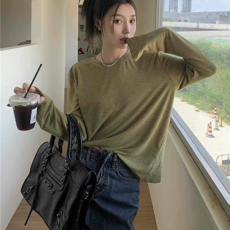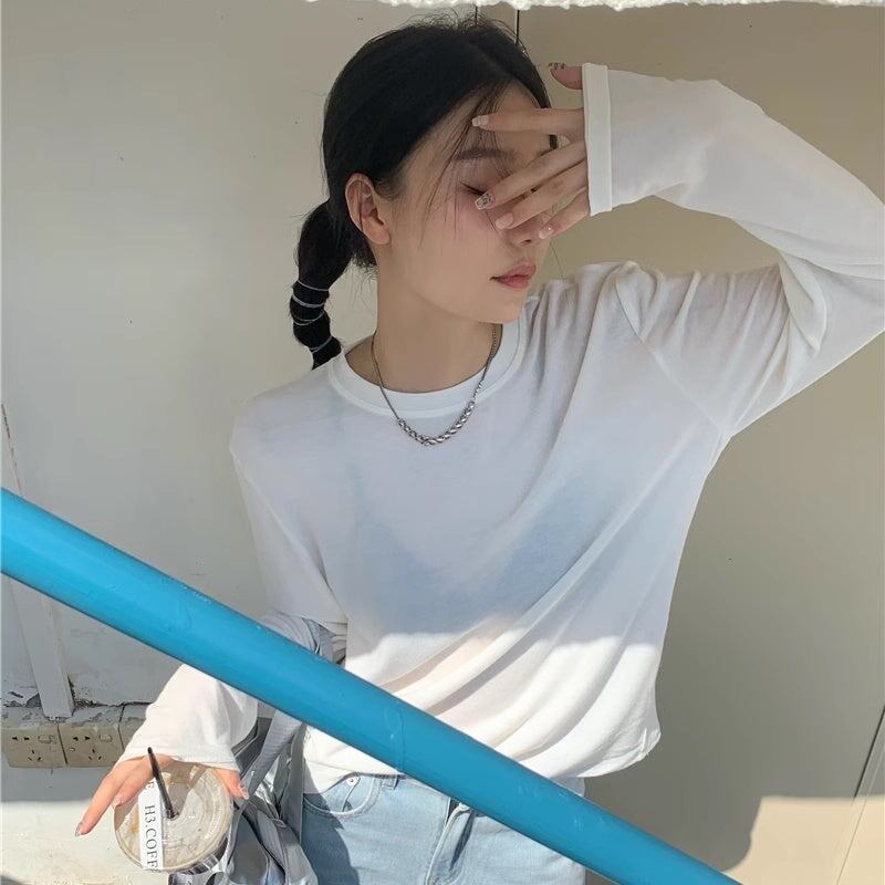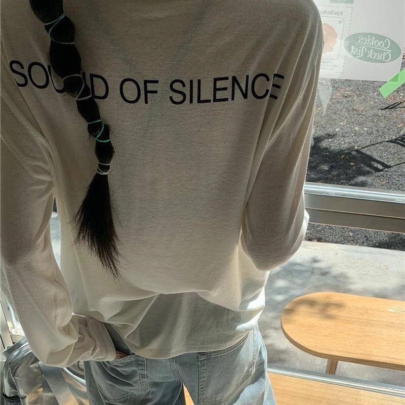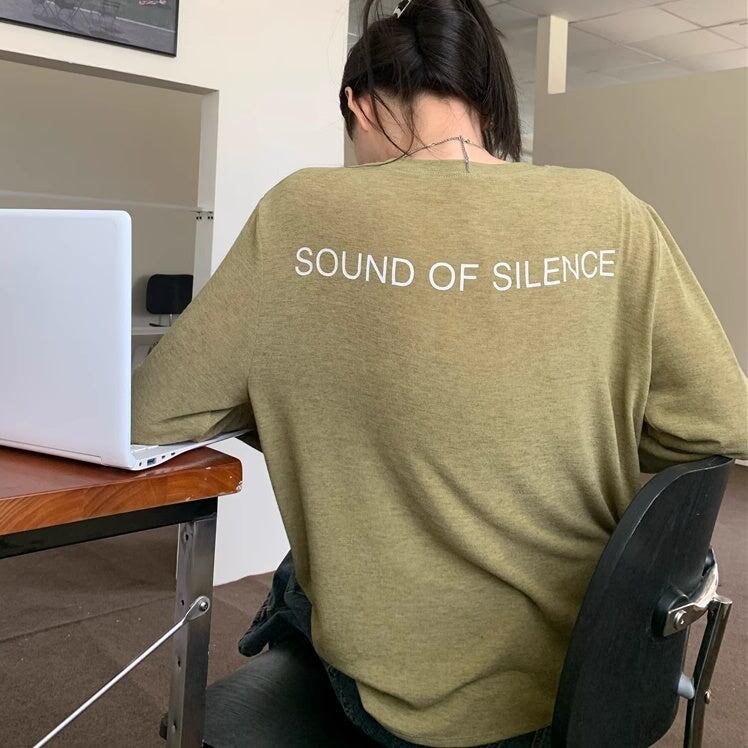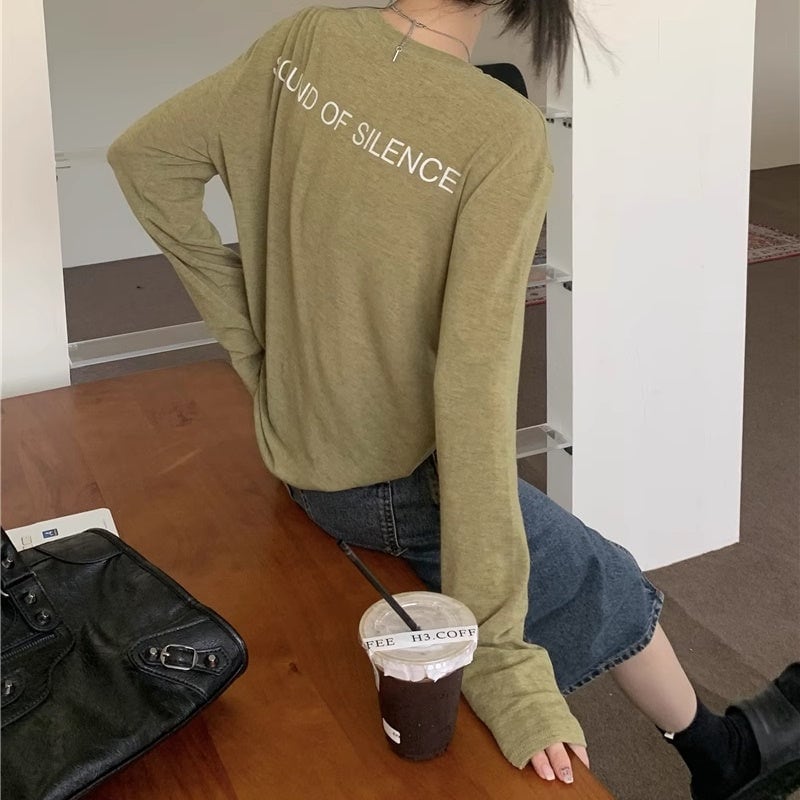 Tシャツ バックロゴ レディース 韓国 ファッション 長袖 トップス 薄手 とろみ ロング袖 バックプリント 無地 とろみ