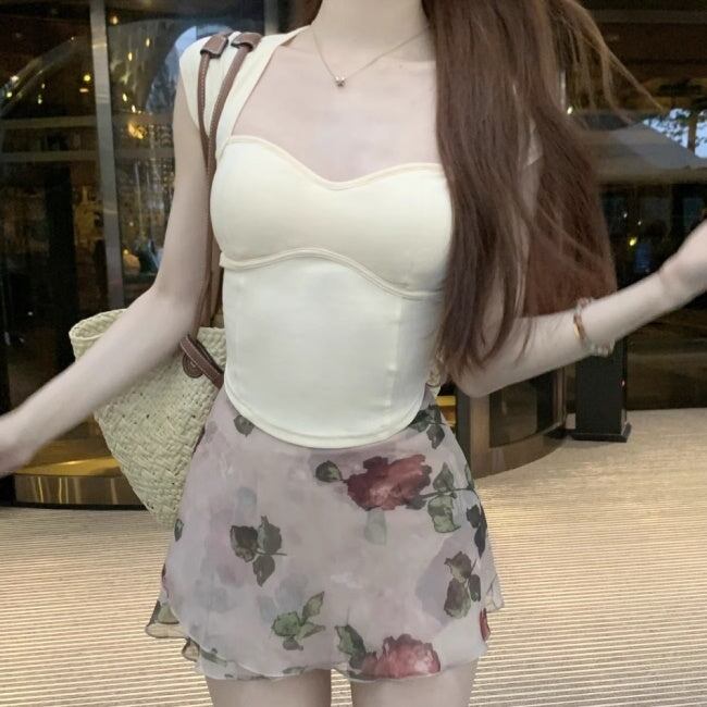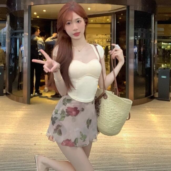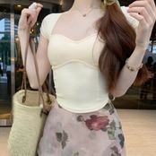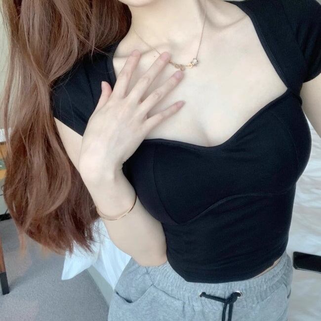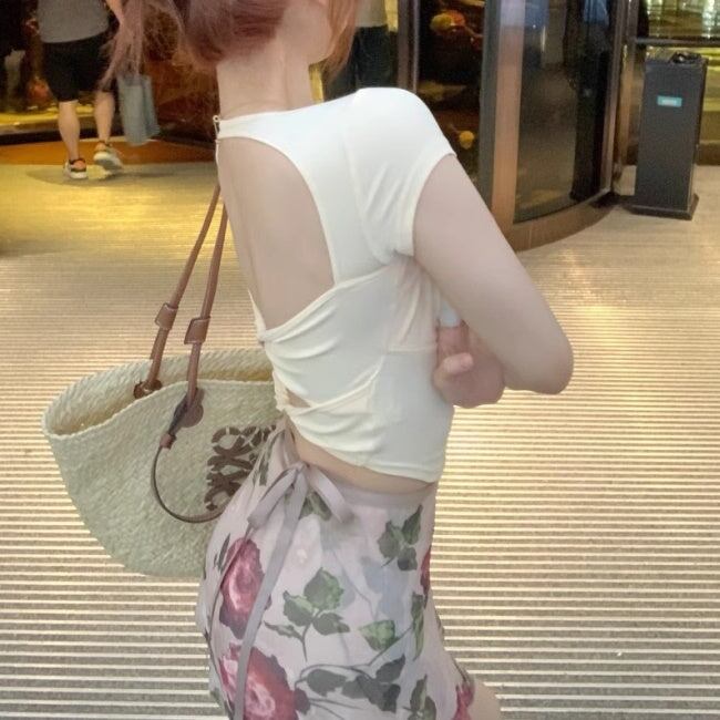 バックホール サマー カットソー レディース 韓国 ファッション 背中みせ フレンチスリーブ クロップド T