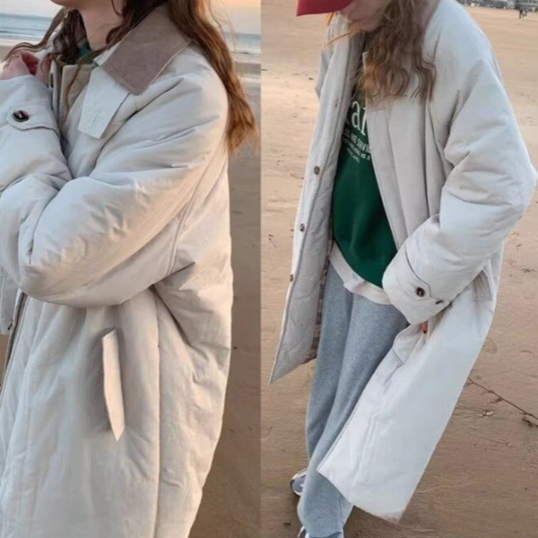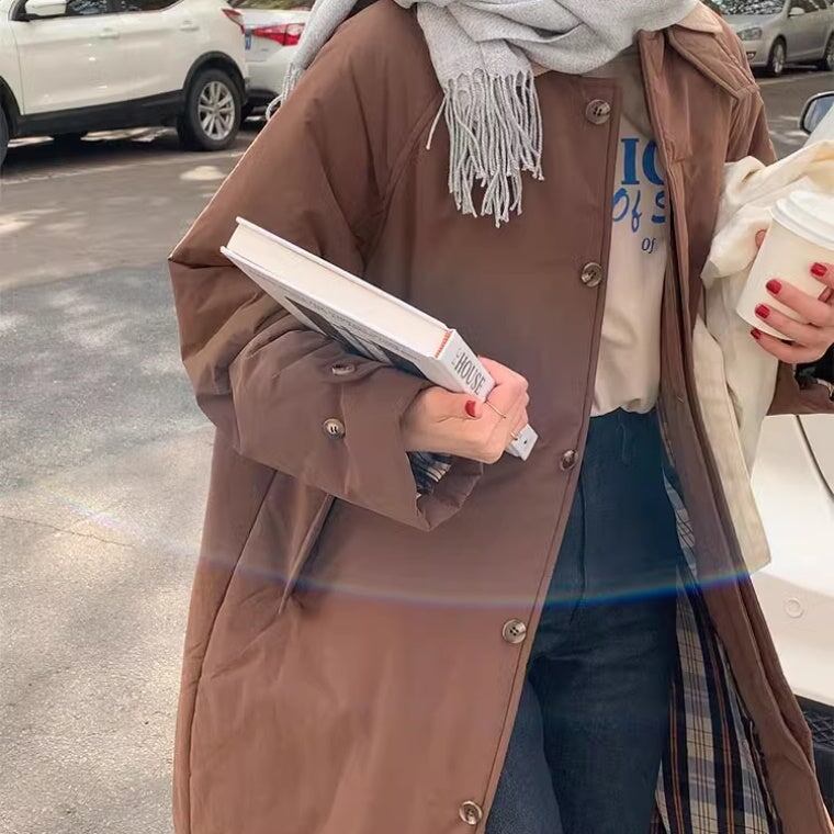 ロングコート レディース 韓国 ファッション シンプル 大人カジュアル かわいい チェック裏地 無地 防寒 コート