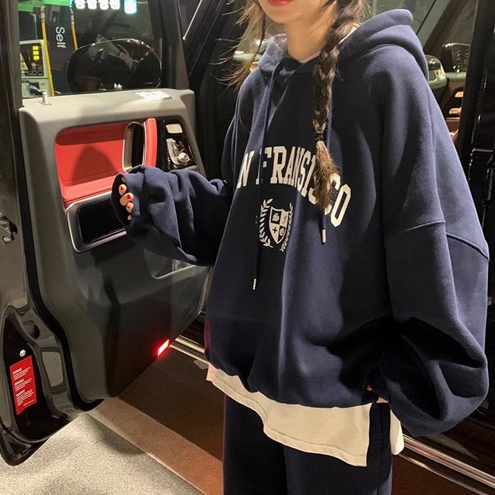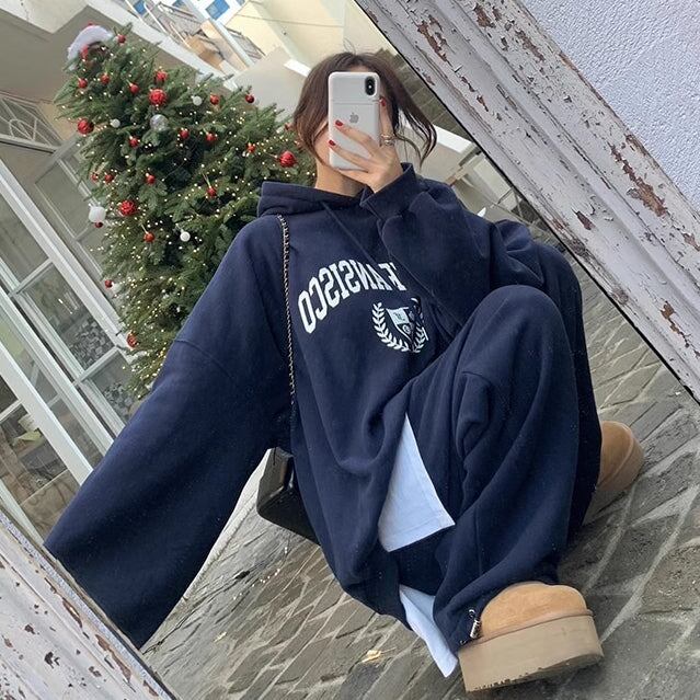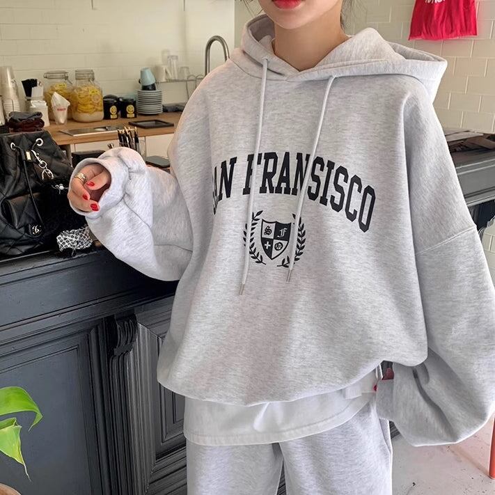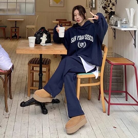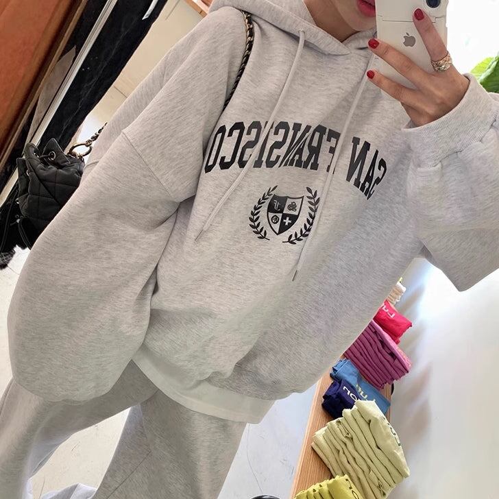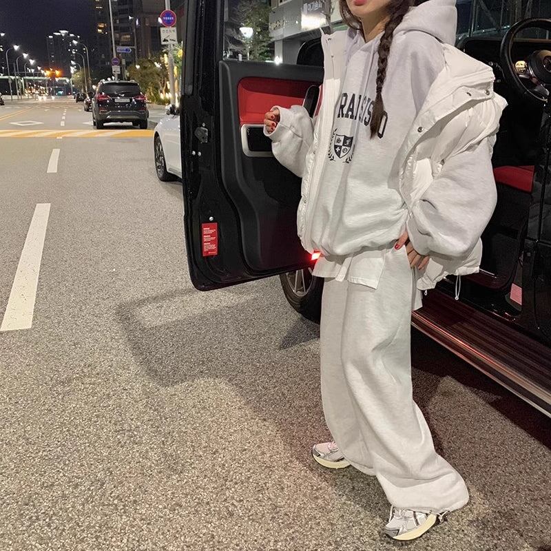 パーカー セットアップ レディース 韓国 ファッション ロゴプリント スウェット 上下セット オーバーサイズ シルエット