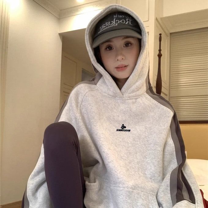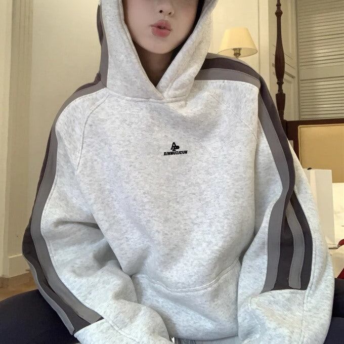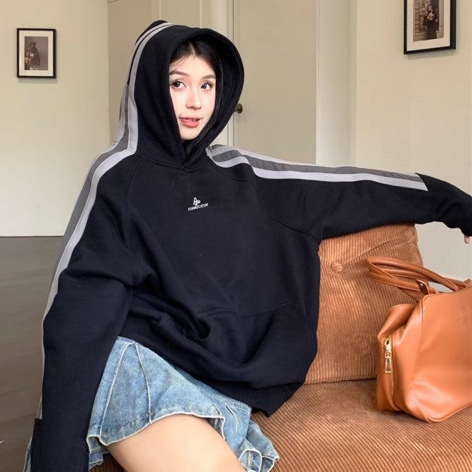 パーカー レディース サイドライン ビッグシルエット ラグラン プルオーバー 韓国 スポーツライン 秋冬 トップス