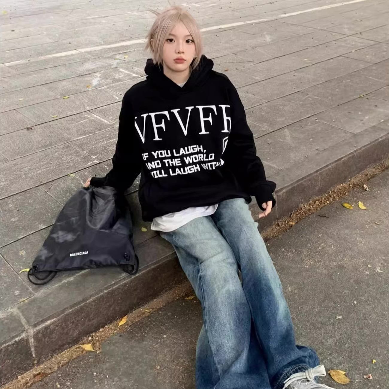 スウェットパーカー レディース 韓国 ファッション 黒パーカー ロゴプリント 大きいロゴ モノトーン おしゃれ 冬トップス 大きいサイズ 男女兼用 ユニセックス