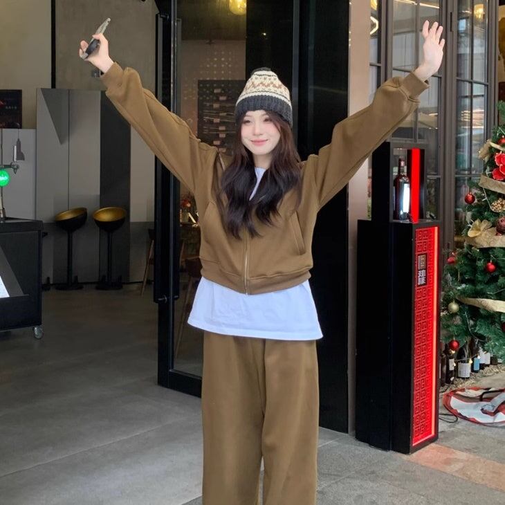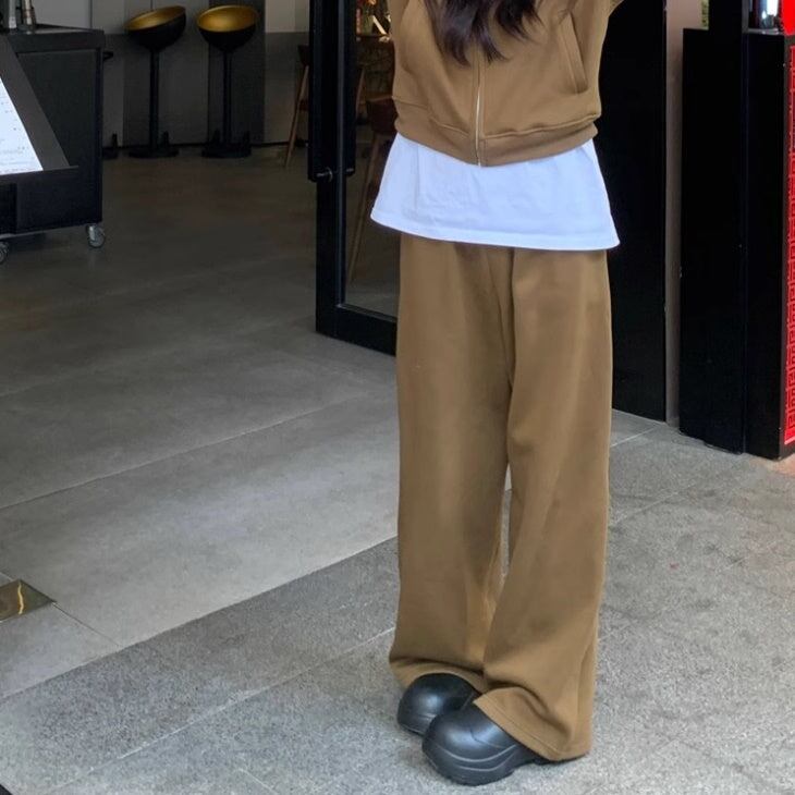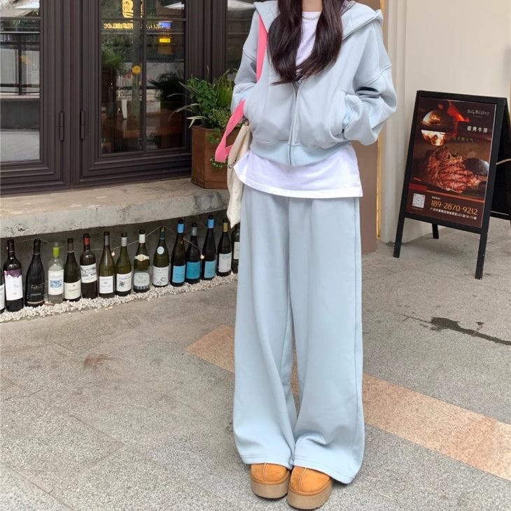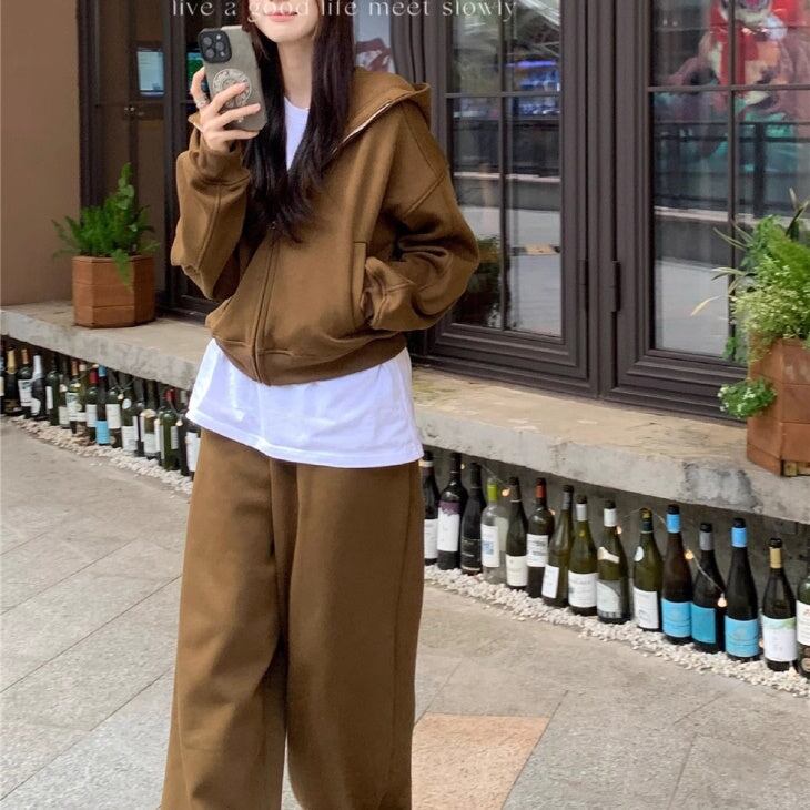 パーカーセットアップ レディース 韓国 ファッション スウェット ジップパーカー ワイドパンツ 上下2点セット