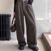ヒョウ柄 ワイドパンツ レディース 韓国 ファッション レオパード パンツ アニマル柄 モップパンツ プリントパンツ