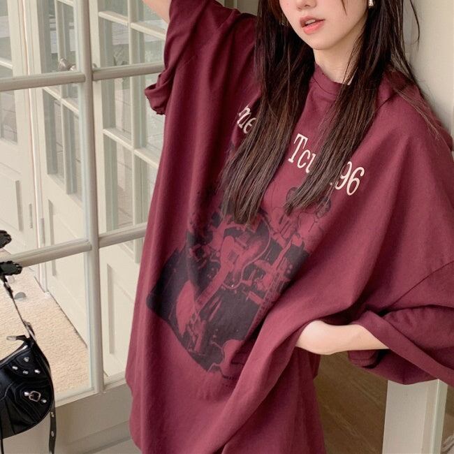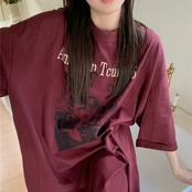 ビッグTシャツ レディース 韓国 ファッション ロング丈 ロゴ プリント 夏トップス ワイドフィット レトロ