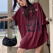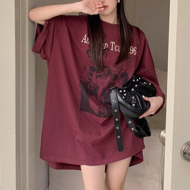 ビッグTシャツ レディース 韓国 ファッション ロゴ プリント グラフィックTシャツ 夏トップス